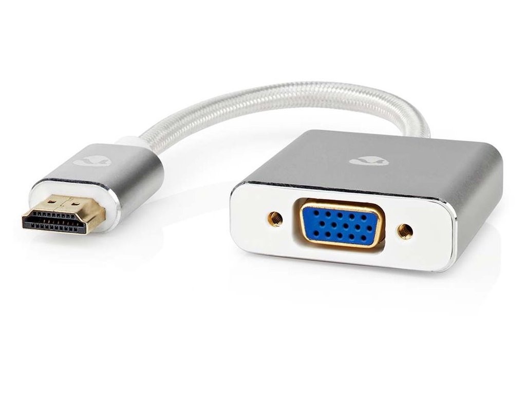 Nedis PROFIGOLD adaptér HDMI na VGA 20 cmTento převodník lze použít k připojení počítače nebo notebooku s výstupem HDMI k VGA kabelu z monitoru, televizoru nebo projektoru. Maximální rozlišení tohoto kabelu je 1080p při 60 hz s maximální přenosovou rychlostí 3,8 Gbps. Vzhledem k tomu, že HDMI podporuje zvuk, ale VGA ne, zvukový signál by byl normálně ztracen při převodu. Tento adaptér je však jedinečný díky možnosti připojení 3,5 mm jack audio kabelu. Tímto způsobem můžete přenášet zvukový signál do reproduktorů, zesilovače nebo sluchátek. Nylonový kabel chrání před účinky ultrafialového světla, což vede k maximální odolnosti.
