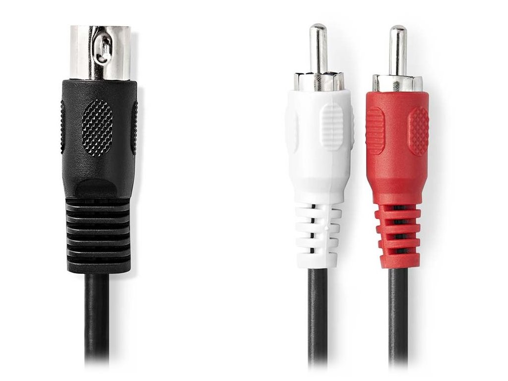 Nedis redukční audio kabel DIN na 2× RCA 1 mTento stereo audio kabel s 5pinovým konektorem DIN a dvěma RCA konektory je vhodný k připojení audiozařízení, jako je například kazetový přehrávač nebo CD přehrávač, k zesilovači.