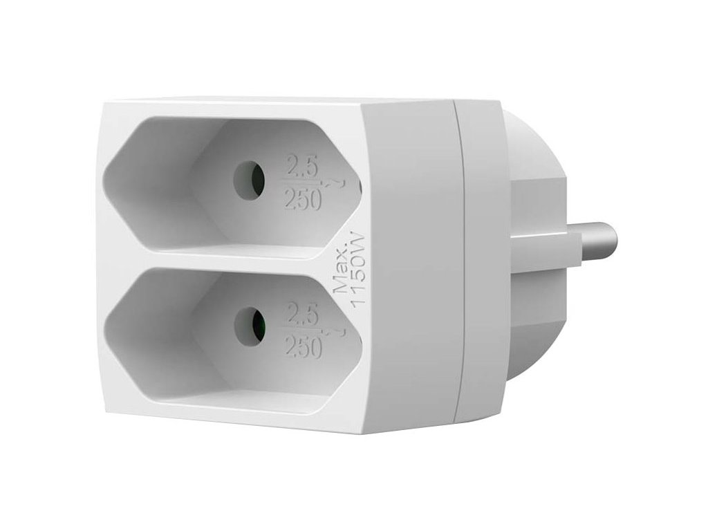 Adaptér umožňuje rozdělení jedné zásuvky typu F (CEE 7/7) na dvě zásuvky typu C (CEE 7/16). Díky kompaktním rozměrům 62 × 45 × 41 mm a hmotnosti pouhých 32 g zabere minimum místa a je ideální pro domácnost i kancelář.