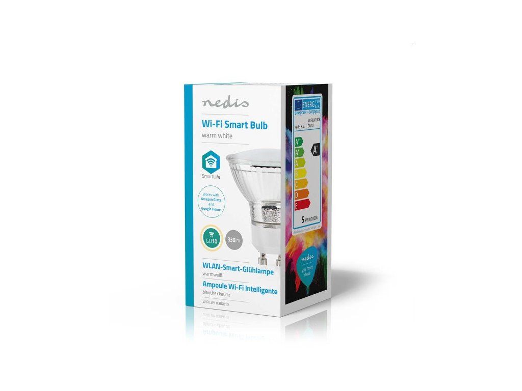 Váš domov bude nielen múdrejší, ale aj ekologickejší. Tieto energeticky úsporné žiarovky majú maximálnu spotrebu energie 4,5 W, ale disponujú svetelným výkonom približne 330 lumenov. A vďaka veľkosti a vzhľadu, ktoré sa podobajú tradičným žiarovkám GU10, môžete použiť existujúce svetla a svietidlá GU10. Nemusíte si tak robiť starosti s nákupom nových svietidiel. - Informácie o zariadení Nedis SmartLife
