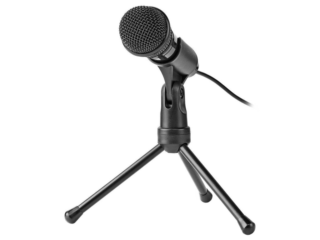 NEDIS stolní všesměrový mikrofon/ tlačítko ON/OFF/ s tříramenným stojanem/ 3,5mm jack/ citlivost -30dB/ černý MICTJ100BK
