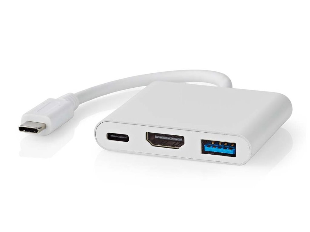 NEDIS USB 3.2 Gen 1 adaptér/ USB-C zástrčka - USB-A zásuvka - USB-C zásuvka/ výstup HDMI/ bílý/ box/ 10 cm CCGB64770WT01