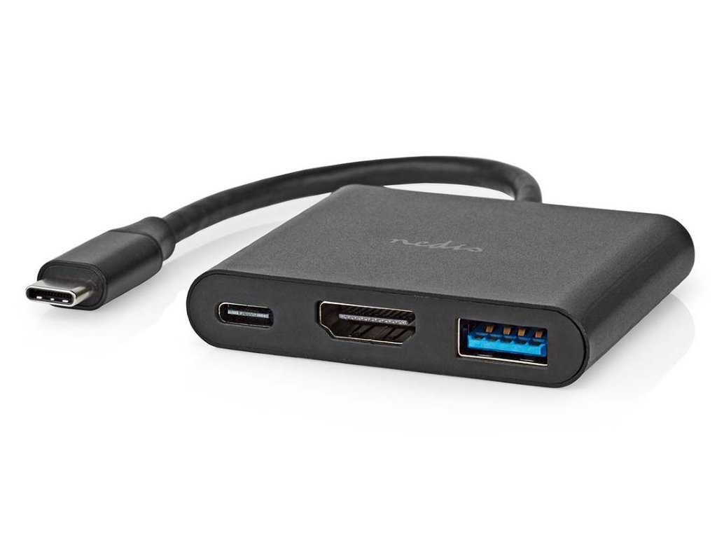 NEDIS USB 3.2 Gen 1 adaptér/ USB-C zástrčka - USB-A zásuvka - USB-C zásuvka/ výstup HDMI/ černý/ box/ 10 cm CCGB64770BK01