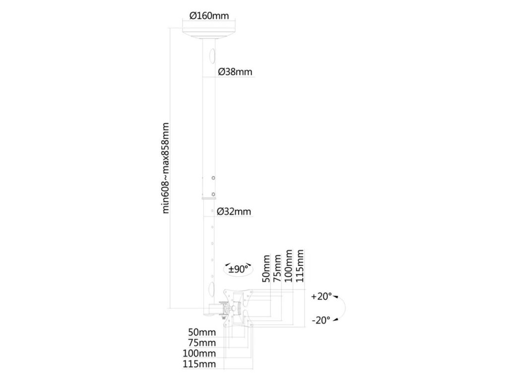 - Stropní držák pro ploché obrazovky či TV 10–30"