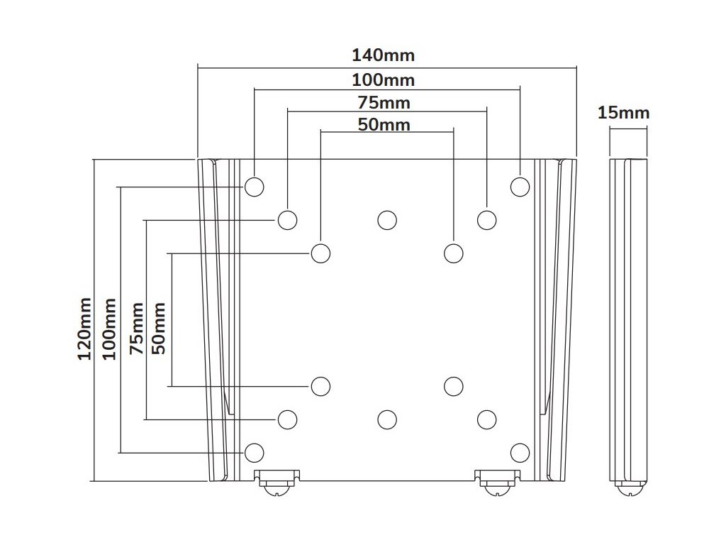 Rozměry VESA: 50 × 50, 75 × 75, 100 × 100