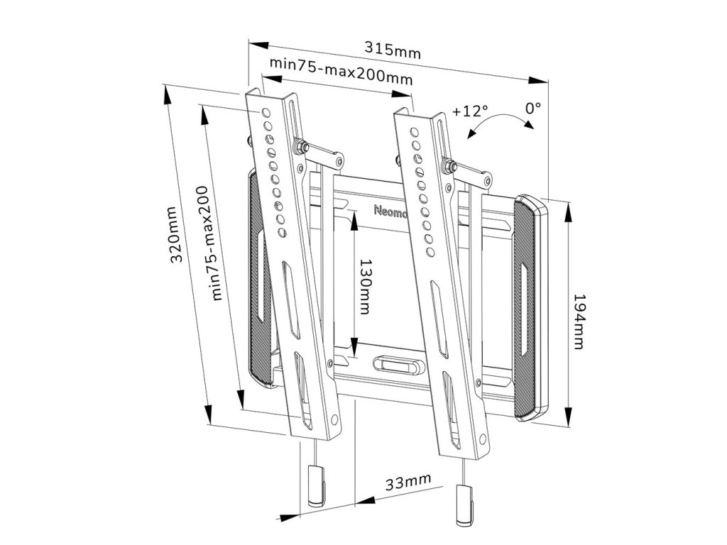 Neomounts WL35-550BL12Sklopný nástěnný držák pro ploché obrazovky s úhlopříčkou od 24" do 55" a hmotností až 45 kg. Disponuje šikovným magnetickým systémem vytažení a uvolnění, což vám umožní snadno a rychle připevnit televizor a zajistit jej. Pomocí uchycení magnetu na držák skryjete tažné a uvolňovací popruhy za obrazovku. Předností je také integrovaná vodováha. Možnost náklonu o +12° umožňuje nastavit požadovaný úhel pohledu pro maximální flexibilitu při sledování obrazovky. Držák má hloubku 3,3 cm a je vhodný pro obrazovky, které odpovídají standardům VESA 75 × 75 až 200 × 200 mm.
