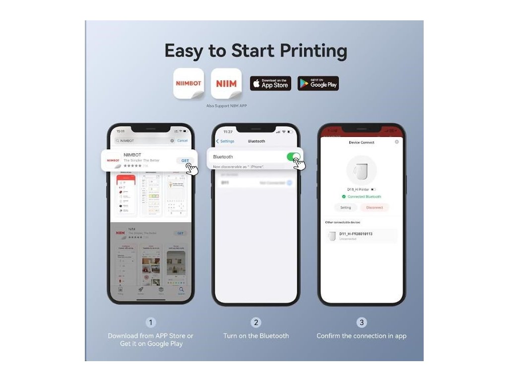 Zabudnite na zdĺhavé a komplikované procesy tlače štítkov. S novinkou NIIMBOT D11-H je tlač štítkov hračka. Vďaka Bluetooth pripojeniu a lítiovej batérii môžete polepovať bez obmedzení až 5 hodín. S NIIMBOT D11-H môžete jednoducho označovať veci v kancelárii, škole, obchode a na mnoho ďalších miestach. Jej kompatibilita so systémami Android a iOS znamená, že môžete tlačiť priamo zo svojho smartphonu alebo tabletu, čo zabezpečuje maximálne pohodlie a efektívnosť.