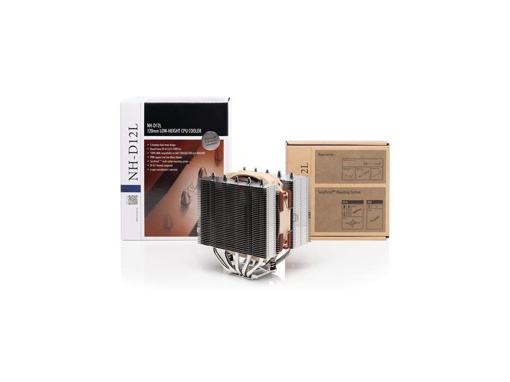 NH-D12L je chladič CPU triedy 120 mm s nízkou výškou, ktorý bol navrhnutý tak, aby spájal vynikajúci tichý chladiaci výkon s vynikajúcou kompatibilitou so skrinkami. Pri výške iba 145 mm (o 13 mm nižšie ako bežné 120 mm modely Noctua) sa hodí pre mnohé 4U skrine, ako aj užšie vežové skrine, ktoré boli predtým obmedzené na riešenia chladičov s 92 mm ventilátormi. Jeho päť heat-pipe dual-tower dizajnom pasívu a najmodernejší NF-A12x25r 120 mm ventilátor zároveň umožňujú dosiahnuť úroveň účinnosti, ktorá prevyšuje mnohé modely s plnou výškou 120 mm. Vďaka konfigurácii s jedným ventilátorom a asymetrickým zostavám rebier poskytuje NH-D12L 100% kompatibilitu RAM na AMD AM4/AM5 a LGA1700/1200 tým, že sa vyhýba pamäťovým slotom. Doplnený o renomovaný montážny systém SecuFirm2™, ocenenú tepelnú zmes Noctua NT-H1 a 6-ročnú záruku výrobcu, NH-D12L je dokonalou voľbou pre aplikácie, ktoré vyžadujú seriózny chladiaci výkon, ale kde sa nezmestí chladič NH-U12A.100% Kompatibilita RAM na LGA1700/1200 a AM4/AM5 - vďaka svojej asymetrickej konštrukcii nepresahuje NH-D12L sloty RAM na základných doskách Intel LGA1700 (rodina LGA17xx)/LGA1200/LGA115x a AMD AM4/AM5, čo zaisťuje ľahký prístup k modulom a 100% kompatibilitu s modulmi DIMM. vysoké rozdeľovače tepla alebo RGB osvetlenie. Na LGA2066 bude zostava zadných rebier presahovať sloty RAM na ľavej strane zásuvky, takže moduly RAM nesmú presiahnuť výšku 45 mm.