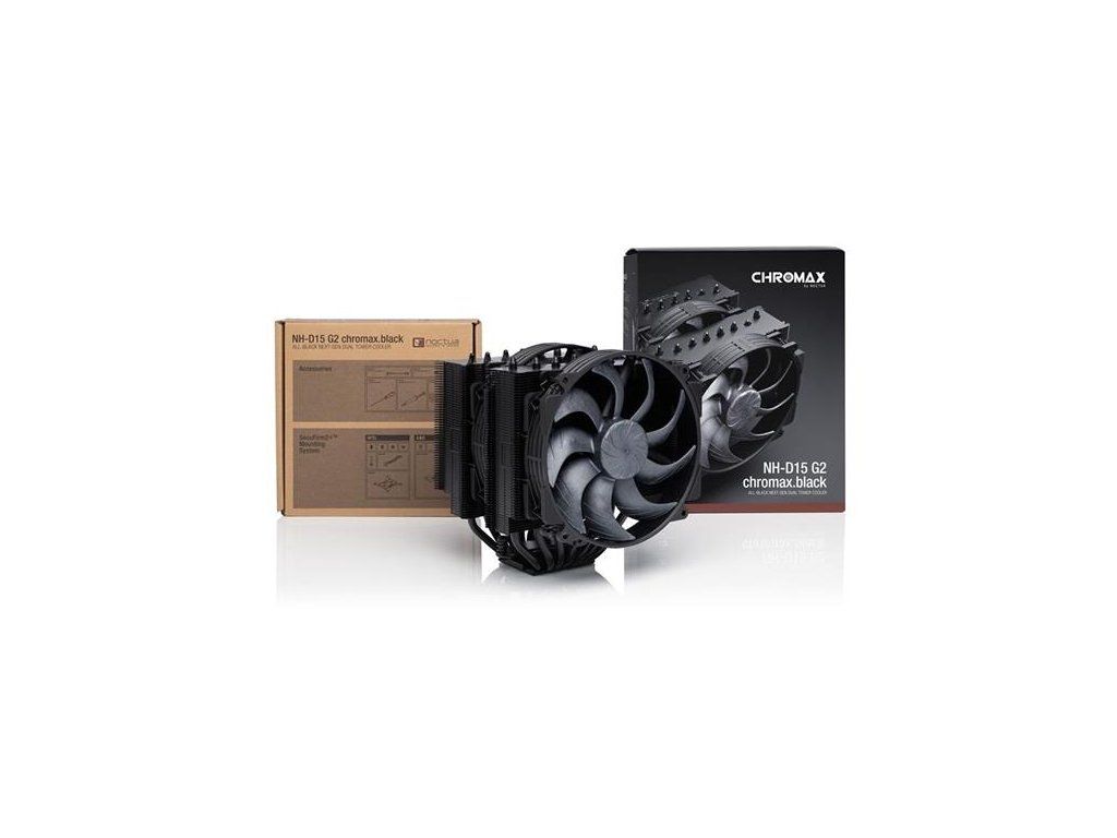 Noctua NH-D15 G2 chromax.black je ďalej vylepšená druhá generácia ikonického modelu NH-D15 od spoločnosti Noctua v čiernom prevedení.Vďaka najmodernejším ventilátorom NF-A14x25r G2 PWM chromax.black s posunom otáčok, ôsmim tepelným trubiciam a asymetrickým rebrovým komínom, ktoré boli starostlivo vyladené na spoluprácu s novými ventilátormi, dosahuje ešte lepší tichý chladiaci výkon ako jeho oceňovaný predchodca.
