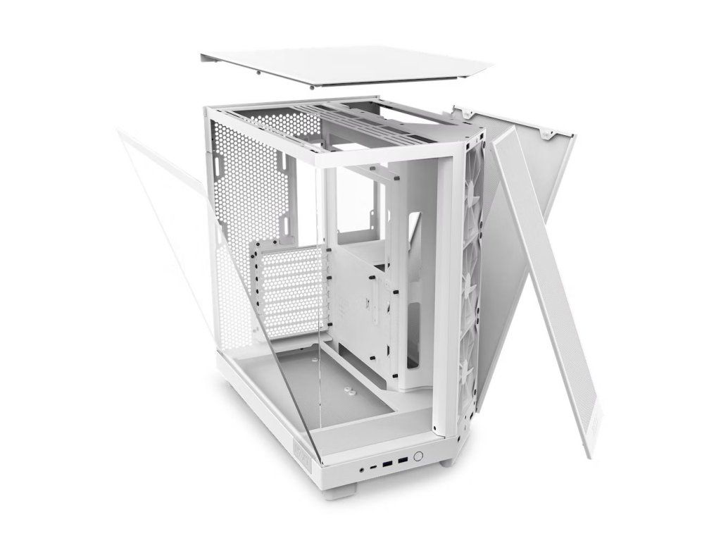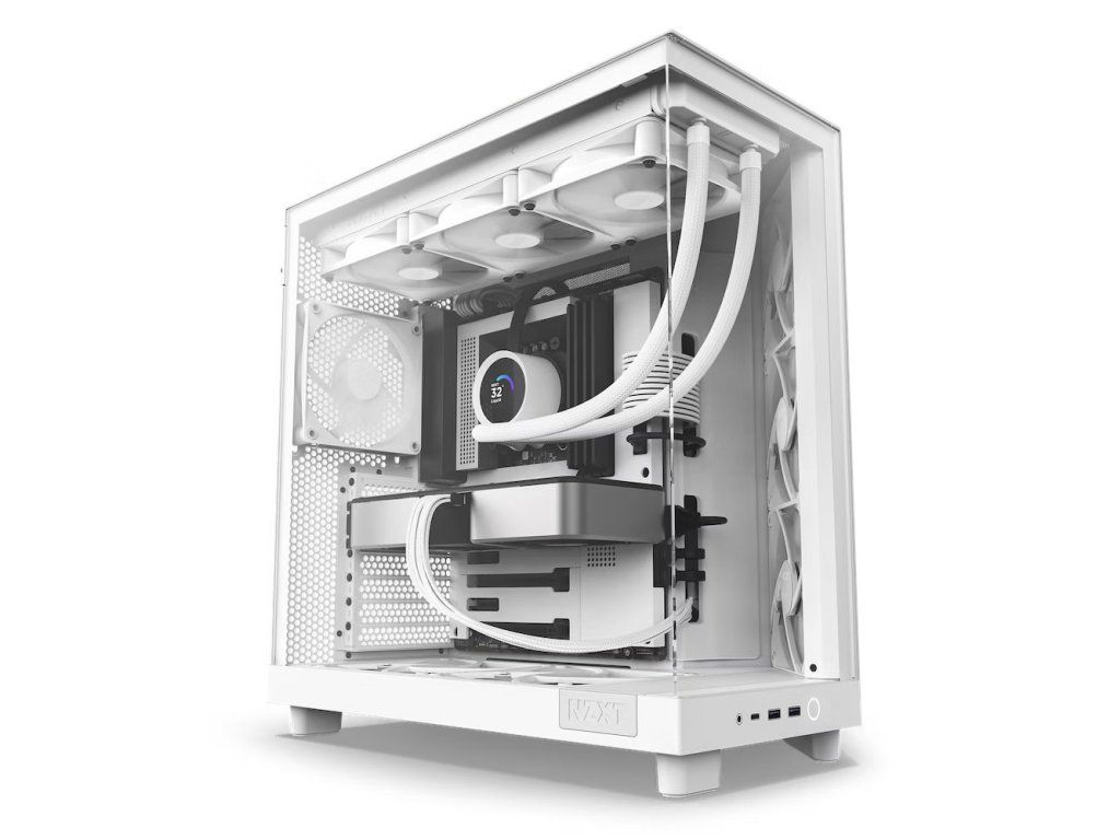 Prosklený panel vám zprostředkuje pohled dovnitř skříně a kontrolu klíčových komponent během chodu. Skříň NZXT H6 Flow je v základu vybavena trojicí 120mm ventilátorů, které jsou umístěny v optimální pozici pro dosažení potřebného chlazení od prvních sekund vysoké zátěže. Perforovaný panel zajistí ideální proudění vzduchu.