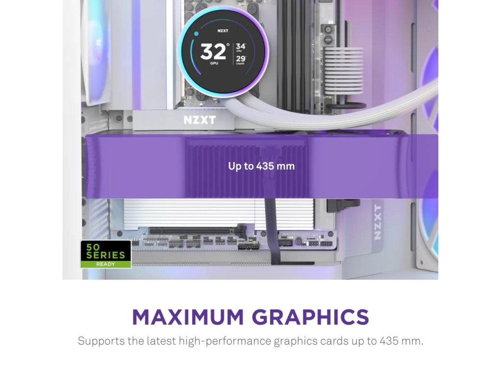 - Veľké chladiče a GPU: Vmestí sa do neho až 420mm radiátor na hornom a pravom prednom paneli a má dostatok miesta pre špičkové grafické karty.