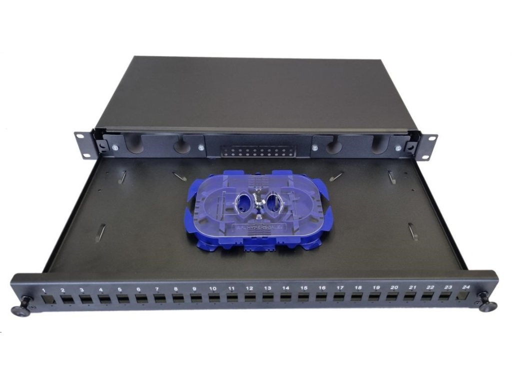 Optická vaňa výsuvná 1U, 24x SC simplex (24x LC duplex, 24x E2000) s kazetou OPTRONIC pre 24 zváraní