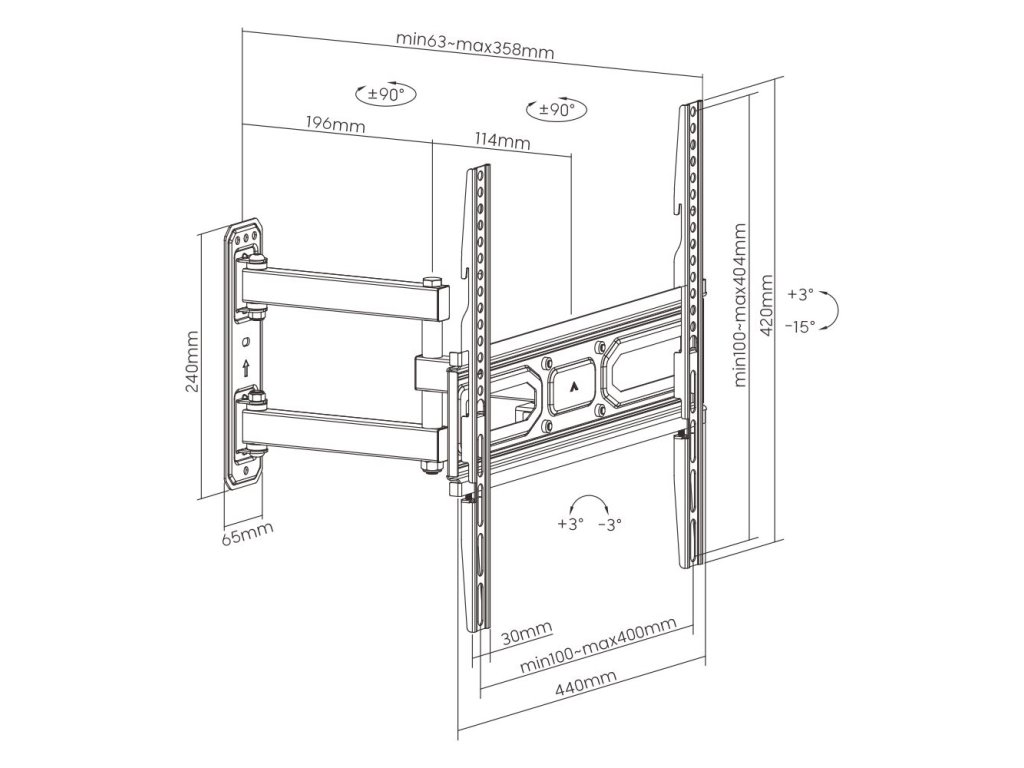 Otočný sklápací držiak TV Fiber Mounts FM78 Kvalitný oceľový držiak na televízory 30-60", nastavenie vzdialenosti TV od steny 63-358mm, otočný až +/-90°, sklopný +3°/-15°, korekcia roviny +/-3°, inštalačný materiál, záruka 5 rokov, VESA 100x100 až 400x400, nosnosť 35kg Otočný, sklopný držiak s nastaviteľnou vzdialenosťou TV od steny Fiber Mounts FM78 Technické údaje: nosnosť 35kg na televízory s uhlopriečkou 30" až 60" podporuje VESA štandardy 100x100 až 400x400 nastavenie vzdialenosti TV od steny 63-358mm otočný až +/- 90° naklápanie TV +3° až -15° korekcia roviny +/- 3° oceľová konštrukcia vynikajúcej kvality ľahká montáž balenie obsahuje inštalačný materiál farebné prevedenie čierne záruka 5 rokov Držiak TV Fiber Mounts FM78 podporuje VESA štandardy: VESA 100x100 VESA 200x100 a 100x200 VESA 200x200 VESA 300x200 a 200x300 VESA 300x300 VESA 400x200 a 200x400 VESA 400x300 a 300x400 VESA 400x400 Na držiaky Fiber Mounts FM78 je možné zavesiť všetky televízory, ktorých hmotnosť nie je vyššia ako 35kg a ktoré podporujú niektorý z vyššie uvedených VESA štandardov. Uvádzaná veľkosť / uhlopriečka televízora nie je podstatná a neurčuje, či je TV na držiak vhodná.Popis produktu bol preložený pomocou umelej inteligencie a môže obsahovať nepresnosti.