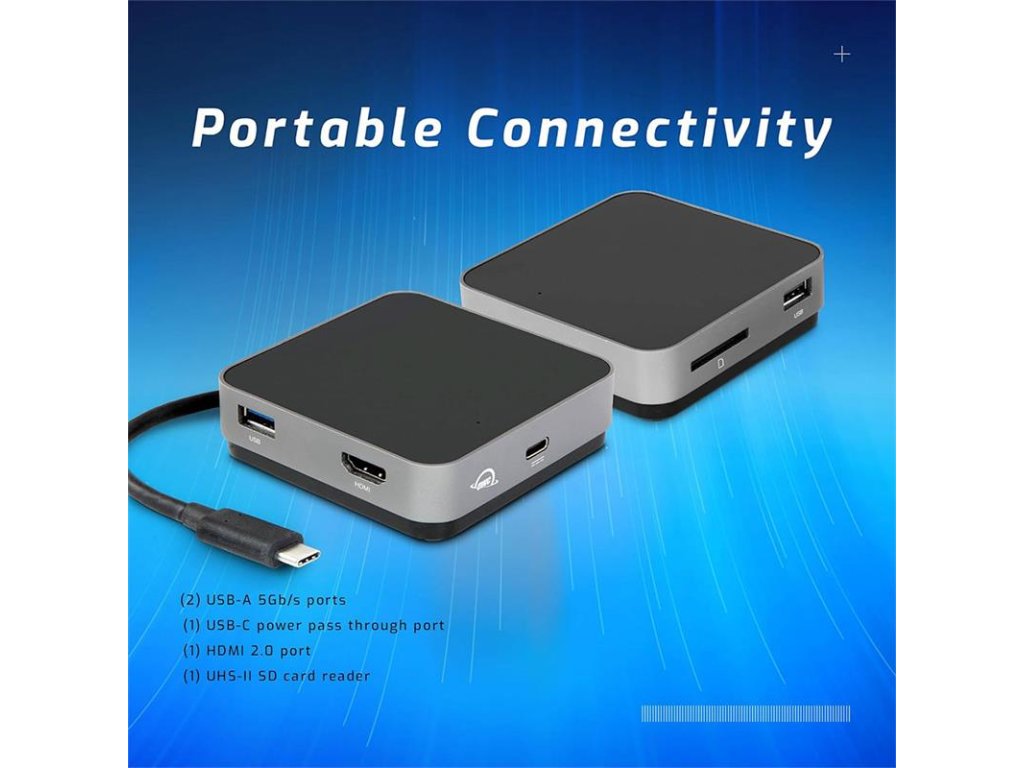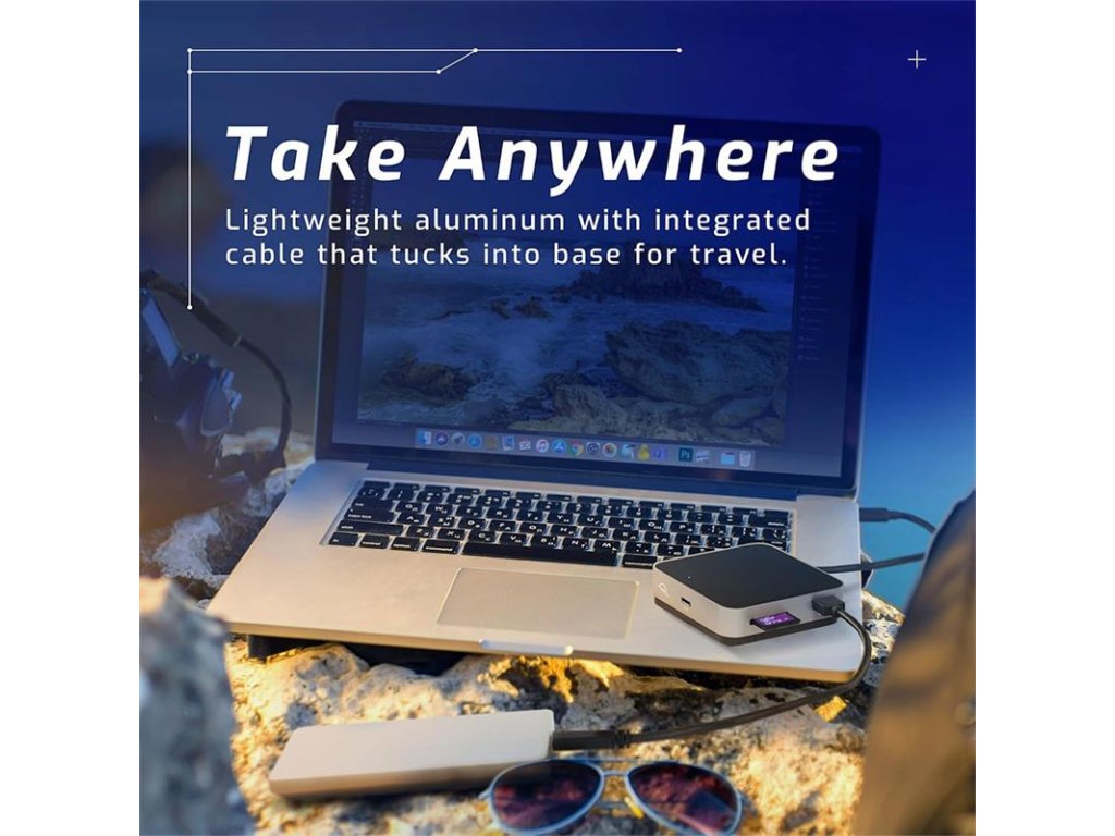Cestovná dokovacia stanica - kompaktný a ľahko prenosný dizajn z kvalitného materiálu - dokovacia stanica na profesionálnej úrovni je pripravené zvládnuť akúkoľvek situáciu - výkonnosť 5 praktických portov zvyšuje vašu produktivitu práce - priechodné nabíjanie s výkonom 100 W - umožňuje pripojiť displej cez HDMI pri rozlíšení 4K - dva USB-A porty na prenos dát - 1x čítačka SD kariet - zabudovaný USB-C kábel - kompatibilná s Mac, PC s TB 3, so zariadeniami iOS, Android či Chrome Porty: 2x USB-A: 5 Gb/s 1x USB-C: 100 W 1x HDMI 2.0 1x Čítačka kariet SDDodatočné parametre