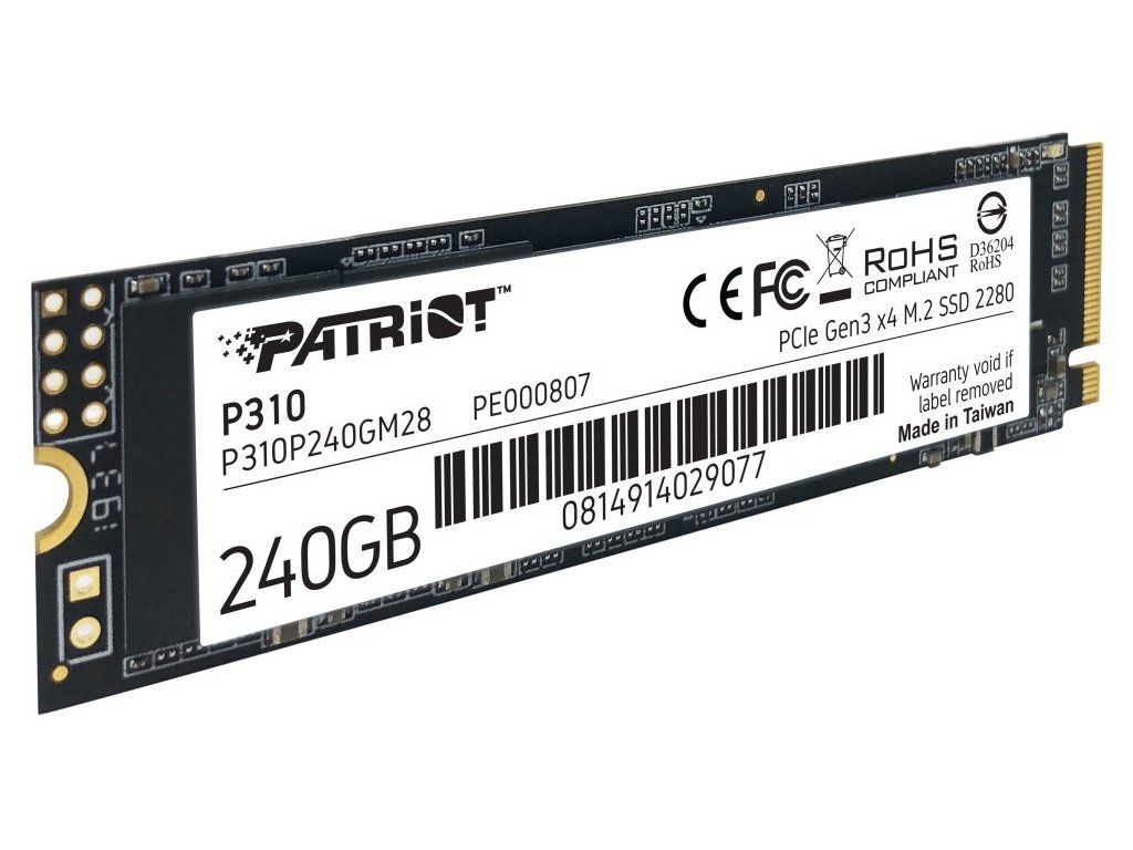 PATRIOT P310 240GB SSD / Interní / M.2 PCIe Gen3 x4 NVMe 1.3 / 2280 P310P240GM28