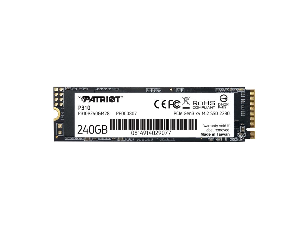 Patriot P310 240GB M.2 2280 PCIe Gen3 x 4 Solid State Drive Postaveno s nejnovějšími PCIe m.2 Gen3x 4, NVMe 1.3, Jednotka SSD nabízí o 25 % vyšší přenosové rychlosti a vstupně-výstupní operace než standardní PCie 3x 2 řešení. P310 m.2 SSD poskytuje skvělé zlepšení doby spouštění, načítání a přenosu než tradiční pevné disky. Pokročilý firmware P310 nabízí Technologie SmartECC, tepelné škrcení a end-to-end data path protection slouží pro zajištění integrity, trvanlivosti a spolehlivosti dat pro každodenní úkoly. Díky kompaktnímu provedení m.2 a P310 SSD navržený pro snadnou instalaci přesně zapadne do všech PC nebo notebooků, zatímco jeho nízká spotřeba energie pomáhá prodloužit výdrž baterie. Zvyšte výkon svého počítače pomocí P310 SSD zažijte rychlé načítání aplikací a lepší celkový výsledek chodu počítače! Kompatibilní operační systémy podporované Windows® 7 * / 8.0 * / 8.1 / 10 *. Na výrobek je 3 roky záruka. Parametry: • Vyrobeno s nejnovějším řadičem PCIe 3 x 4 • 2280 M.2 PCIe Gen3 x 4, NVMe 1.3 • Komplexní ochrana datových cest • Technologie SmartECC • Technologie tepelného škrcení • Provozní teplota: 0 ~ 70°C • Spotřeba energie: Plná: 2,38 W při nečinnosti: 0,38 W • TBW: 120 TB • Náhodné čtení 4K: až 280K IOPs • 4K zarovnaný náhodný zápis: až 250K IOPs • Sekvenční čtení (ATTO): až 1 700 MB/s • Sekvenční zápis (ATTO): až 1 000 MB/s • Sekvenční čtení (CDM): až 1 700 MB/s • Sekvenční zápis (CDM): až 1 000 MB/s • Podporované operační systémy: Windows® 7 */8.0*/8.1/10 • Kapacita 240GB *Může vyžadovat driveryDodatočné parametre