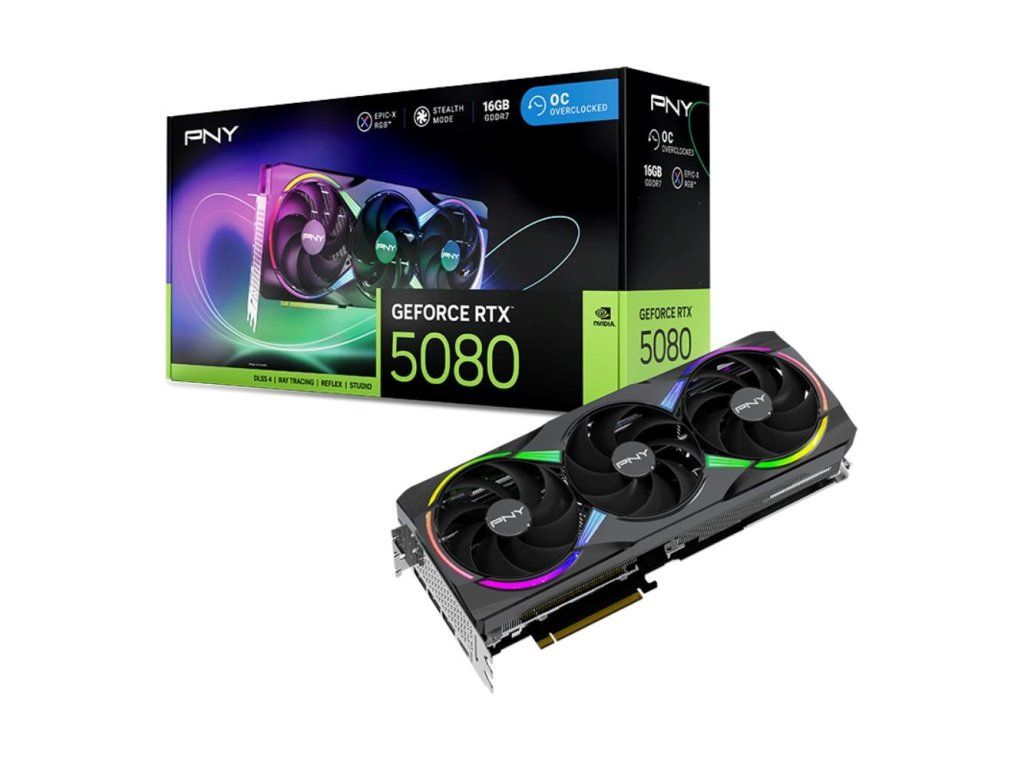 PNY VGA Nvidia GeForce RTX 5080 16GB ARGB OC Triple Fan, RTX 5080 OC, 16GB GDDR7, 3xDP, 1xHDMI VCG508016TFXXPB1-O