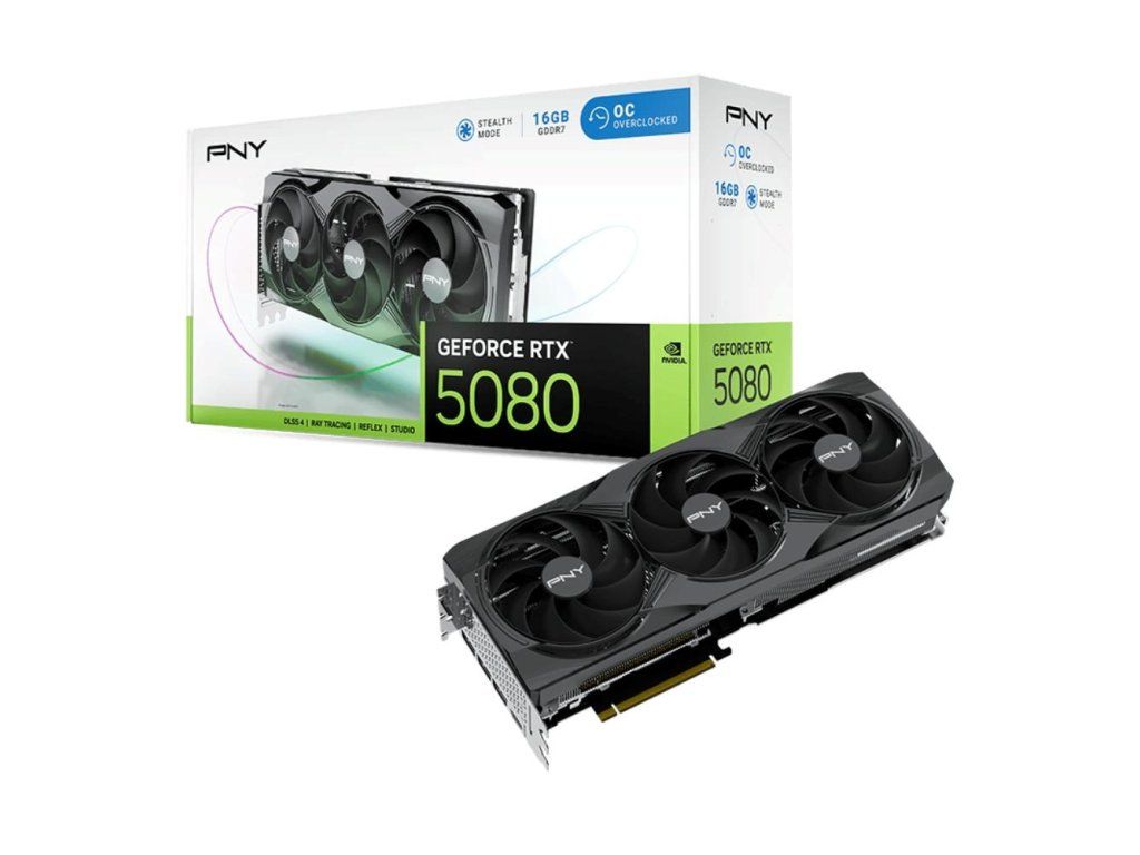 PNY VGA Nvidia GeForce RTX 5080 16GB Triple Fan OC, RTX 5080 OC, 16GB GDDR7, 3xDP, 1xHDMI VCG508016TFXPB1-O