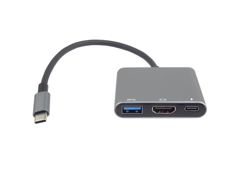 PremiumCord adaptér USB-C na HDMI + USB3.0 + PD, rozlišení 4K a FULL HD 1080p Tento adaptér umožňuje vysoce kvalitní převod videa a zvuku z USB-C konektoru na HDMI konektor pro další monitor/TV/projektor. Funguje jako externí grafická karta. Umožní přidat další monitor a USB periferii nebo paměť a současně napájet přes konektor PD. Umožňuje také pracovat na více obrazovkách současně. Udělejte si svůj pracovní den více zábavný a pohodlnější, pracujte na dvou obrazovkách současně. *Rozlišení obrazu HDMI: 4K@30Hz a FULL HD 1080p *Vstupní konektor: USB-C male kompatibilní s thunderbolt3 *Výstupní konektor: HDMI female + USB3.0 female + PD (power delivery) *PD Konektor USB-C pro nabíjení 20V až 5A (100W napájení, nabíjení) *USB3.0 konektor pro připojení flash paměti nebo jiného USB zařízení nebo pro napájení přes USB, rychlost až 5Gbps *Adaptér přenáší digitální obrazu i zvuk *Plug and play. *Typ C konektor s možností zapojení v jakémkoliv směru *Barva: stříbrná a šedá *Kompaktní zastříknuté odolné pouzdro *Balení v sáčku s EAN kódem a popisem Funguje s novými zařízeními s USB-C podporujícími DisplayPort Alternate modesDodatočné parametre