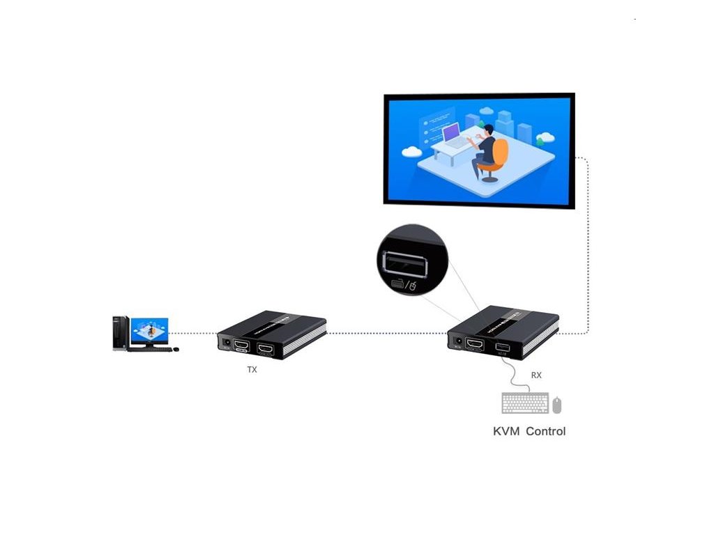 PremiumCord HDMI KVM extender s USB na 60m cez jeden kábel Cat5/6, bez oneskorenia khext60-4