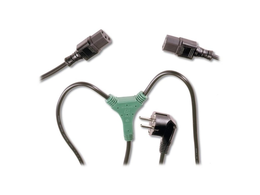 PremiumCord přívodní síťový Y-kabel 230 VTento 10A napájecí kabel s dvěma konektory IEC320 C13 (F) slouží jako rozdvojka a je určený k napájení PC či monitoru.