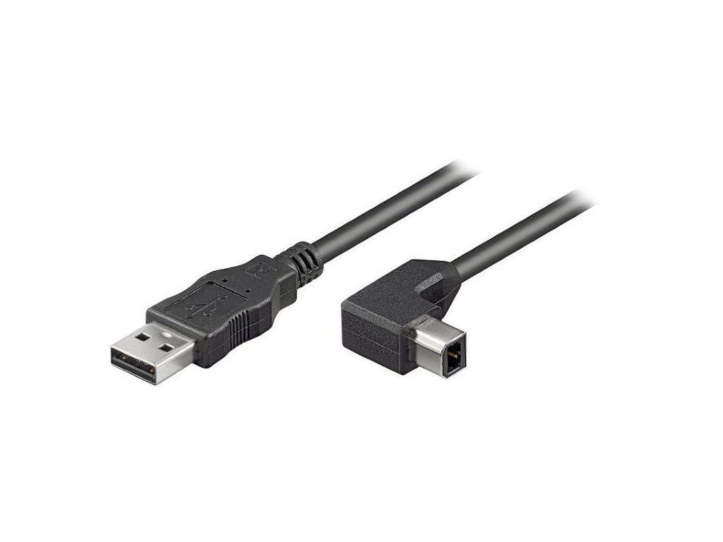 PremiumCord Kabel USB 2.0/ A-B se zahnutým USB-B konektorem 90°/ 2m/ černý ku2ab2-90
