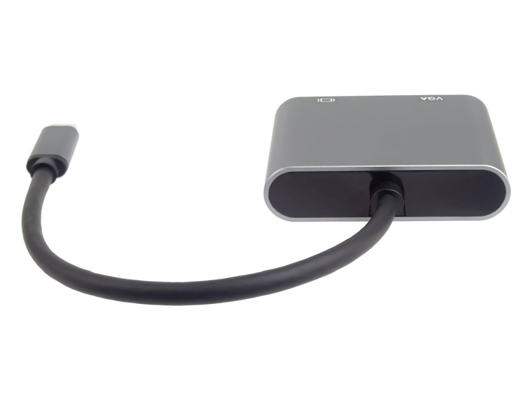 PremiumCord MST adaptér USB-C na HDMI + VGA, rozlišení 4K a FULL HD 1080p Tento adaptér umožňuje vysoce kvalitní převod videa a zvuku z USB-C konektoru na HDMI a VGA konektor pro dva monitory/TV/projektory. Funguje jako externí grafická karta s dvěma výstupy. Umožní rozšířit stávající plochu na dva monitory nebo ji zrcadlit na další monitor. Umožňuje také pracovat na dvou různých obrazovkách současně. Udělejte si svůj pracovní den více zábavný a pohodlnější, pracujte na dvou obrazovkách současně. *Rozlišení obrazu HDMI: 4K@30Hz a FULL HD 1080p *Rozlišení obrazu VGA: FULL HD 1080p *Umožňuje nastavit dva mody provozu: Extend Mode (obrazovka se rozšíří na dva monitory) a Mirror Mode (na dvou monitorech se zobrazuje stejný obraz) *Vstupní konektor: USB-C male kompatibilní s thunderbolt3 *Výstupní konektor: HDMI female + VGA DB15 female *Adaptér přenáší digitální obrazu i zvuk *Plug and play. *Typ C konektor s možností zapojení v jakémkoliv směru *Barva: stříbrná a šedá *Kompaktní zastříknuté odolné pouzdro *Balení v sáčku s EAN kódem a popisem Funguje s novými zařízeními s USB-C podporujícími DisplayPort Alternate modesBuďte prvý, kto napíše príspevok k tejto položke.