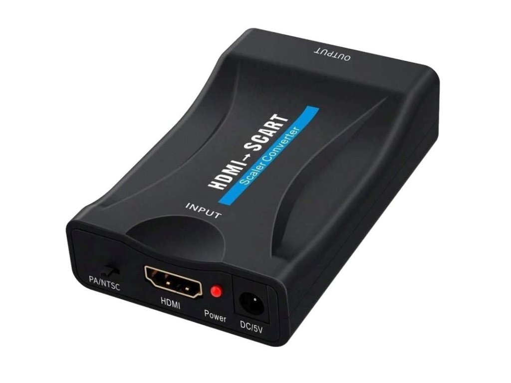 Pripojte napájací adaptér 230V (je súčasťou setu), aby prevodník HDMI na SCART fungoval správne.