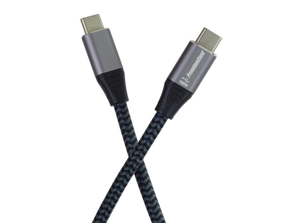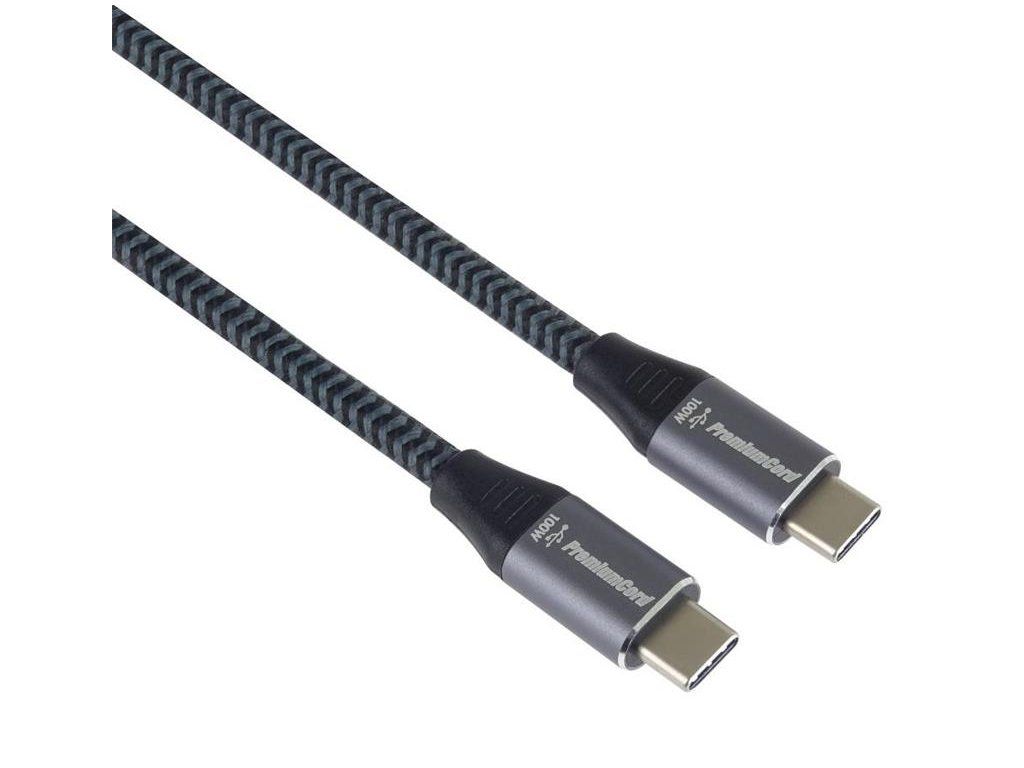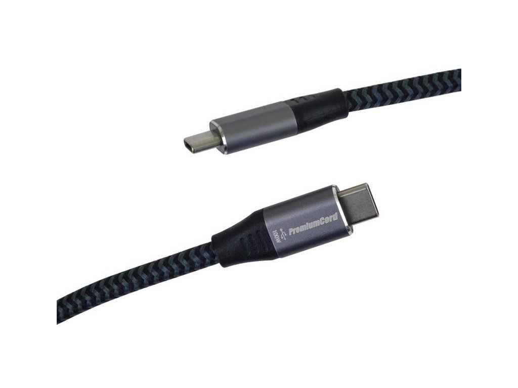 PremumCord kábel USB-C M/M, 100W 20V/5A 480Mbps bavlnený oplet, 0.5m ku31cw05