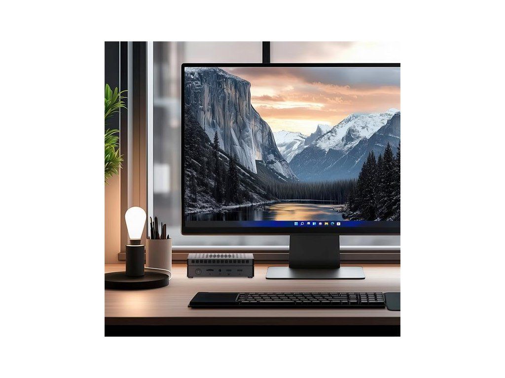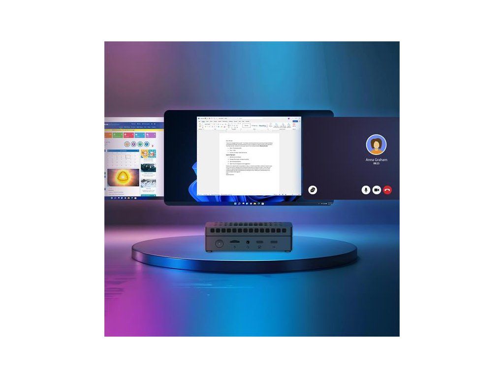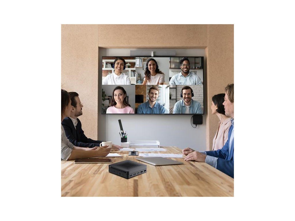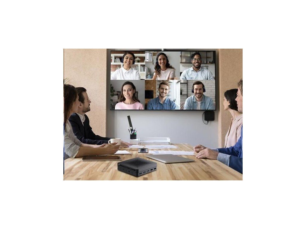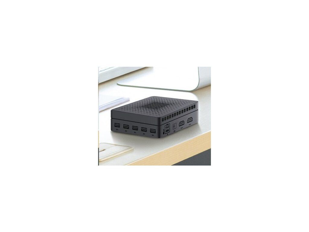 Technické špecifikácie. Napájanie: vstup 19,0 V (DC), 2,26 A, max. 43,0 W (pohotovostný režim ? 0,5 W); výstup USB (A) 5,0 V (DC), 1,0 A; výstup USB (C) 5,0 V (DC), 3,0 A. Napájací adaptér: vstup 100-240 V (AC), 0,8 A, 50/60 Hz; výstup 19,0 V (DC), 3,42 A, 65,0 W. Konektory: HDMI OUT (×2); LAN (×1); Combo Jack 3,5 mm (×1); USB (A) 3.2 (×5); USB (C) 2.0 (×1); USB (C) 3.2 (×1); slot na kartu TF/microSD (×1). CPU: Intel N100 3,4 GHz (4 jadrá). GPU: Intel UHD Graphics Xe 750 MHz. Zvukový kodek: Realtek ALC269-VC3. Operačná pamäť: DDR4, 8 GB (max. 16 GB), 3200 MHz. Interné úložisko: SSD, 256 GB (max. 2 TB). Podpora kariet TF/microSD (max. 512 MB). LAN 10/100/1000 Mbps. Wi-Fi 2,4/5 GHz; ? 19,5 dBm (79,43 mW). BT 5.2; ? 10,0 dBm (10,0 mW). Chladenie: pasívne (chladič). Ovládanie: klávesnica a myš.