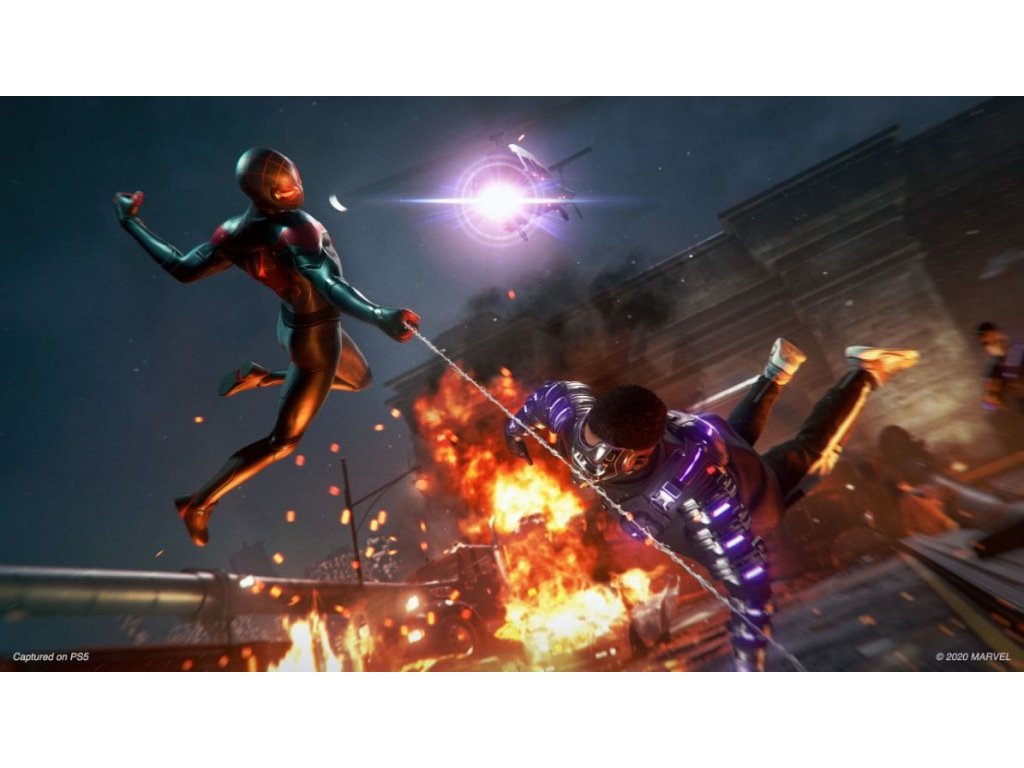 New York je znovu v ohrožení. Přišel čas učinit důležité rozhodnutí, abyste zastavili zuřící boj o moc. Jako Miles Morales se vžijete do kůže nejnovějšího Spider-Mana a vychutnáte si pohled na detailně zpracované, živoucí město z výšky. Pod vedením svého mentora Petera Parkera objevíte unikátní explozivní schopnosti, které vás odlišují od předchozího Spider-Mana. Kromě napínavých průzkumů a akčních soubojů se ovšem budete muset také vypořádat s rovnováhou vztahu mezi běžným životem a kariérou superhrdiny. Nová etapa Příběh hry Marvel's Spider-Man pokračuje. Miles Morales pod vedením svého přítele a mentora Petera Parkera, původního Spider-Mana, objevuje své superhdinské schopnosti. Vydejte se s ním na epické dobrodružství! Dobrodružství v NY Zastavte boj mezi energetickou korporací a armádou zločinců, abyste ochránili New York před zkázou. Během napínavých misí si užívejte pohled na živoucí ulice města plné detailů z nečekaných úhlů. Nečekané dovednosti Vyzkoušejte všechny triky nového Spider-Mana, které vám pomohou se vypořádat s nepřáteli. Kromě osvědčených dovedností, jako jsou akrobatické kousky a metání pavučin, můžete využít unikátní bioelektrické útoky nebo kamufláž. Propracované postavy Setkejte se znovu se stávajícími postavami a poznejte i zcela nové hrdiny. Milesova matka Rio Moralesová se postaví energetické korporaci a Milesův nejlepší přítel Ganke Lee ho podpoří svými schopnostmi vývojáře softwaru.Dodatočné parametre