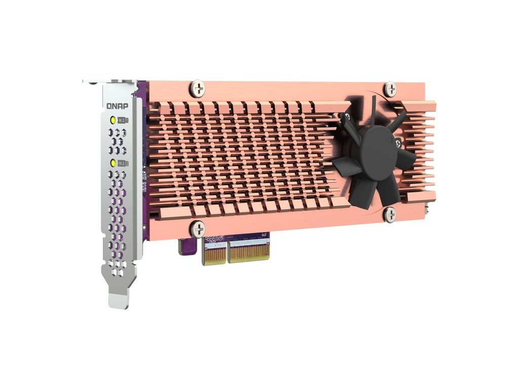 QM2-2P-344A Přidejte do počítače, serveru nebo NAS dva disky M.2 NVMe SSD pomocí rozšiřující karty PCIe 3.0 Funkce Pomocí QM2-2P-344A přidejte do svého počítače nebo QNAP NAS disky NVMe SSD a zvyšte úložnou kapacitu a výkon. *PCIe Gen 3 x4 poskytuje počítači přenosovou rychlost až 32 Gb/s. *Nejsou potřeba žádné ovladače ani další software. *Podporuje systémy Windows a Linux *Udržuje disky SSD v chladu a zachovává vysoký výkon. *Snadná instalace disků M.2 SSD do počítače pomocí bezšroubového a snadno použitelného způsobu uzamčení. *Sledování stavu a teplot disků M.2 SSD v reálném čase SPECIFIKACE Konektor *2 x sloty M.2 22110 nebo 2280 PCIe (Gen3 x4) NVMe SSD PCIe a kanály *PCIe Gen3 x4 Držák *Nízkoprofilový (výchozí). Součástí dodávky je také nízkoprofilový plochý držák a držák s úplnou výškou. Rozměry (D x Š x V) *170,5 × 68,9 × 19,3 mmDodatočné parametre