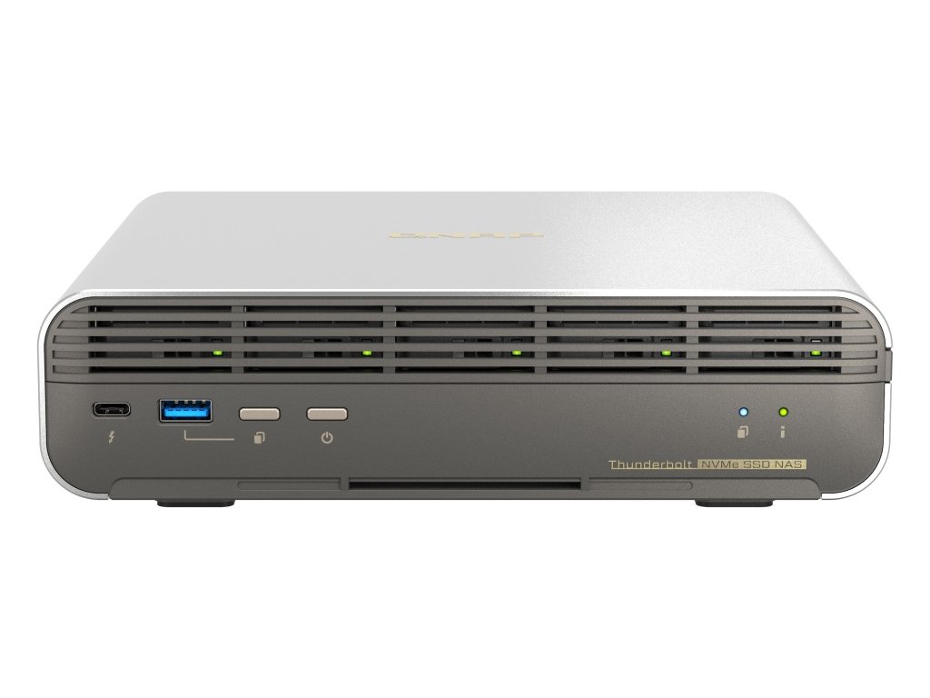 TBS-h574TX přenosný Thunderbolt All-flash NASbook podporující disky E1.S/M.2 NVMe SSD – dokonalý společník pro produkci videí, ideální pro DIT na natáčení, překódování videa, sdílení a zálohování Odkaz na web výrobce: https://www.qnap.com/cs-cz/product/tbs-h574tx Seznam kompatibility pro tento model: https://www.qnap.com/cs-cz/compatibility/?model=766&category=ssd&filter[type]=23 Funkce Kompaktní TBS-h574TX Thunderbolt 4 all-flash NASbook je určen pro filmové scény, malá studia, malé produkční týmy a uživatele v malých a středních podnicích a malých kancelářích a zvyšuje produktivitu video produkce. Nabízí vysokorychlostní vstupy/výstupy a výkon procesoru Intel Core, které vyžaduje produkce videa, takže tvůrci používající počítače Mac nebo Windows si mohou vychutnat dosud nejplynulejší střih videa v reálném čase, přenos velkých souborů, překódování videa a zálohování. Zařízení TBS-h574TX jako most mezi předprodukcí a postprodukcí posouvá videoprojekty a týmovou spolupráci na vyšší úroveň. V TBS-h574TX je spuštěn operační systém QuTS hero založený na systému ZFS, který zajišťuje integritu dat. Dle potřeby lze přejít na instalaci operačního systému QTS. TBS-h574TX poskytuje tvůrcům obsahu dokonalou kombinaci stylového designu a výkonu. Díky kovové skříni poskytuje optimalizovaný chladicí výkon. Díky stolnímu designu je zařízení TBS-h574TX prostorově úsporné – menší než papír A4 a s objemem pouze 2,54 litru – ideální pro malá studia nebo videoprodukční týmy, které hledají přenosné řešení. Od verze 5.2.2 již je možné do NAS nainstalovat také QuTS hero na bázi ZFS. * procesor s hybridní architekturou pro multitasking - procesory Intel Core 13. generace s hybridní architekturou (jádro P a jádro E) poskytují vysoký výkon a efektivitu * velmi rychlá úprava souborů RAW - díky adaptéru E1.S na M.2 SSD připojenému do každého slotu můžete flexibilně instalovat pět disků E1.S nebo M.2 PCIe NVMe SSD pro bleskurychlou editaci multimediálních souborů - disk M.2 SSD vyměnitelný za provozu a automatická výměna disků RAID zvyšují spolehlivost systému, snižují riziko ztráty dat a usnadňují probíhající projekty * 2,5GbE a 10GbE jako standard - sítě 2,5GbE a 10GbE urychlují přenos velkých souborů a umožňují připojení většího počtu připojených zařízení/pracovních stanic připojením síťového switche * Thunderbolt 4 pro rychlejší přímé připojení - 2 porty Thunderbolt 4 umožňují přímé připojení pracovních stanic Mac/PC k zařízení TBS-h574TX a poskytují rychlost až 20 Gb/s pro střih videa v rozlišení 4K * rychlejší přenos přes USB - 2 porty USB 3.2 Gen 2 (10 Gb/s) umožňují rychlý import/export souborů z/do externích úložných zařízení OBSAH BALENÍ *TBS-h574TX *5 x E1.S NVMe SSD 3.84 TB *10Gbase-T Ethernet Cable x 1 *Power Cord x 1 *AC Adapter x 1 *Quick Installation Guide (QIG) SPECIFIKACE CPU * 10jádrový/12vláknový procesor Intel Core i5-1235U 10C(2P+8E)/12T až 4,4 GHz Architektura CPU * 64 bitová x86 Grafický procesor * integrovaná grafika Intel Iris Xe Graphics Šifrovací modul * ano (AES-NI 256) Systémová paměť * 16 GB onboard (není rozšiřitelná) Maximální paměť * 16 GB onboard (není rozšiřitelná) Paměť Flash * 5GB (dvojitá ochrana OS při spouštění) Pozice pro diskové jednotky * 5 x E1.S až 15mm (5x PCIe Gen3 x2)- (předinstalovaný adaptér pro podporu M.2 2280 pro každý slot) Kompatibilita diskových jednotek * E1.S nebo M.2 2280 PCIe NVMe (chladiče M.2 nesmí přesáhnout výšku 4,5 mm) Vyměnitelné za provozu * ano Slot M.2 * 5x M.2 2280 PCIe Gen 3 sloty (přes předinstalovaný adaptér) - kompatibilní s NVMe SSD PCIe Gen 3 a vyššími verzemi - systém je dodáván s SSD Podpora akcelerace mezipaměti SSD * ano 2,5 gigabitový ethernetový port * 1x (2,5G/1G/100M) 10 gigabitový ethernetový port * 1x 10GBASE-T (10G/5G/2,5G/1G/100M) Probuzení po síti LAN (WOL) * ano Rámec Jumbo * ano Port Thunderbolt * 2x Thunderbolt 4 (podporuje pouze připojení Thunderbolt pro hostitele Windows a Mac a USB úložná zařízení-externí úložná zařízení Thunderbolt třetích stran nejsou podporována) Port USB 2.0 * 1x Port USB 3.2 Gen 2 (10Gb/s) * 2x HDMI výstup * 1x HDMI 1.4b Form Factor * stolní design Indikátory LED * stav, kopírování přes USB, SSD 1-5 Tlačítka * stav, kopírování přes USB, reset Rozměry (VxŠxH) * 60×215×199 mm (rozměry nezahrnují podložku pod nožky NAS-může být vysoká až 30mm v závislosti na modelu) Hmotnost (čistá) * 2,24 kg Provozní teplota * 0-40°C Napájecí jednotka * 120W adaptér (19V DC výstup, 100-240V AC vstup) Spotřeba energie: provozní režim, typický * 46 W Ventilátor * 2x 40mm, 12V DC, systémový Systémové varování *buzzer Max. počet souběžných připojení (CIFS) – s max. pamětí * 1500 Více informací se dozvíte na stránkách výrobce.Dodatočné parametre
