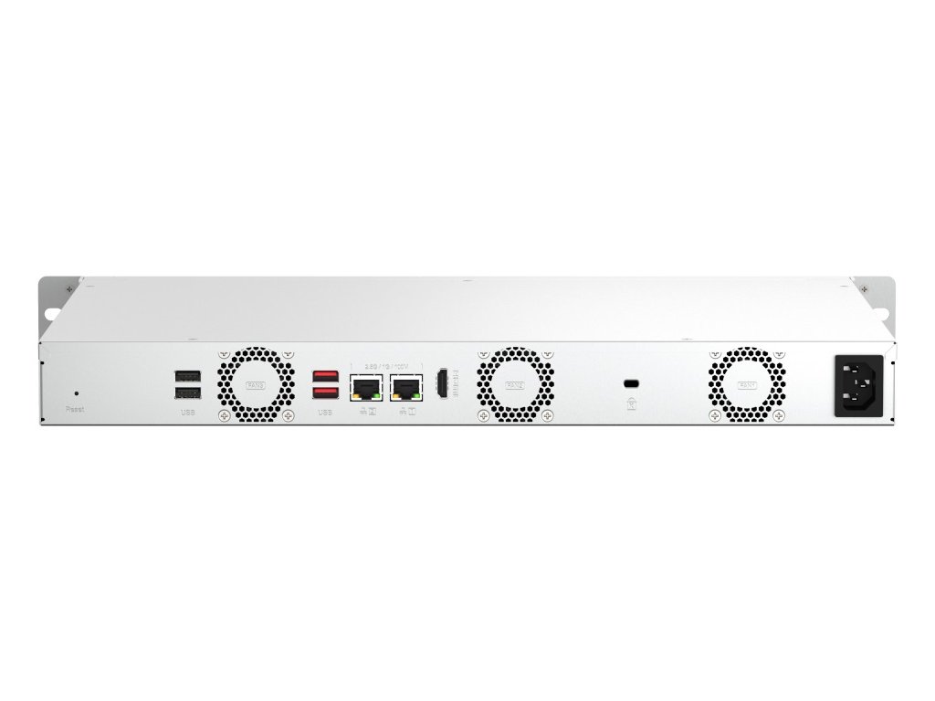 TS-464eU-8G 1U 2,5GbE NAS s malou hloubkou pro montáž do racku umožňuje upgrade na sloty M.2 NVMe SSD pro vyšší výkon Odkaz na web výrobce: https://www.qnap.com/cs-cz/product/ts-464eu Seznam kompatibility pro tento model: https://www.qnap.com/cs-cz/compatibility/?model=626&category=1 Funkce Zařízení TS-464eU je vybaveno čtyřjádrovým procesorem Intel® Celeron® N5095 (navýšení až na 2,9 GHz). Prostorově efektivní konstrukce s malou hloubkou umožňuje snadnou instalaci do malých multimediálních skříní nebo míst s rozsáhlou kabeláží. S rozšiřitelnou kapacitou úložiště a bohatými funkcemi překonává zařízení TS-464eU předchozí generaci. *Přenosovou rychlost až 5Gb/s lze dosáhnout nastavením slučování portů s využitím dvou vestavěných portů 2,5GbE. *Podporuje přehrávání médií 4K a transkódování v reálném čase. *Dva sloty M.2 PCIe NVMe SSD podporují technologii automatického stupňování Qtier™ a SSD cache. *Dva porty USB 3.2 Gen 2 10Gb/s pro rychlejší přenos dat. *Chrání počítače PC/Mac, virtuální počítače, softwarové kontejnery, cloudová data a služby SaaS. *Brány cloudového úložiště realizují hybridní cloudové aplikace prací s prostorem pro cache, který je v zařízení NAS rezervovaný. OBSAH BALENÍ *TS-464eU *ethernetový kabel *napájecí kabel *16x šroub s plochou hlavou (pro 3,5'' HDD) *12x šroub s plochou hlavou (pro 2,5'' HDD) *2x závěs tvaru L *2x držák *instalační průvodce SPECIFIKACE CPU *Intel® Celeron® N5095 4-core/4-thread processor, burst up to 2,9GHz Architektura CPU *x86 64 bitů Grafický procesor *Intel® UHD Graphics Jednotka s pohyblivou řádovou čárkou *ano Šifrovací modul *ano (AES-NI) Systémová paměť *8GB SO-DIMM Maximální paměť *16 GB (2x 8 GB) Paměť Flash *4GB (dvojitá ochrana OS při spouštění) Pozice pro diskové jednotky *4x 3,5'' SATA 6Gb/s, 3Gb/s Kompatibilita diskových jednotek *3,5'' SATA jednotky pevných disků *2,5'' SATA jednotky pevných disků *2,5'' SATA SSD Vyměnitelné za provozu *ano Slot M.2 *2x M.2 2280 PCIe Gen 3 x1 Podpora akcelerace SSD cache *ano Gigabitový Ethernet port (RJ45) *2x (2,5G/1G/100M/10M) Probuzení po síti LAN (WOL) *ano Rámec Jumbo *ano USB *2x USB 2.0 *2x USB 3.2 Gen 2 (10 Gb/s) HDMI *1x HDMI 1.4b Form Factor *1U s montáží do racku Indikátory LED *napájení/stav, LAN, USB, HDD1-4, M.2 SSD 1-2 Tlačítka *napájení, reset Rozměry (VxŠxH) *43,3×482,6×321,33mm Hmotnost (čistá) *4,35kg Hmotnost (celková) *5,91kg Provozní teplota *0-40°C Relativní vlhkost *5 až 95%, bez kondenzace Napájecí jednotka *100W PSU, 100-240 V Spotřeba energie: režim spánku HDD *21,105W Spotřeba energie: provozní režim, typický (s plně obsazenými jednotkami) *35,297W Ventilátor *3x 40mm Systémové varování *bzučák Max. počet souběžných připojení (CIFS) *1500 Více informací se dozvíte na stránkách výrobceDodatočné parametre