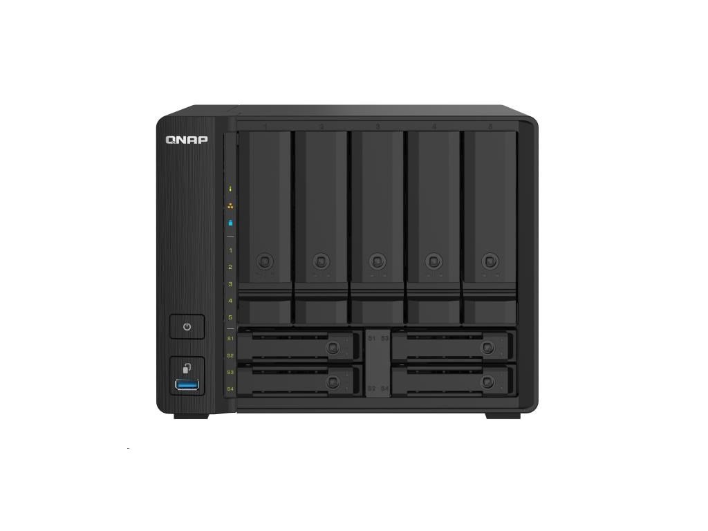 Štyrjadrné 1,7GHz zariadenie TS-932PX umiestni deväť diskových pozícií do veľkosti 5-polového zariadenia NAS. S piatimi 3,5" diskovými pozíciami SATA 6Gb/s a štyrmi 2,5" pozíciami SATA 6Gb/s poskytuje zariadenie TS-932PX schopnosť vytvoriť hybridnú infraštruktúru HDD/SSD na zvýšenie výkonu aplikácií. So dvoma portami 10GbE SFP+ a dvoma portami 2,5GbE LAN podporuje zariadenie TS-932PX siete budúcnosti na zefektívnenie aplikácií náročných na šírku pásma a zabezpečenie plynulejšieho prístupu k súborom a ich zdieľania.
