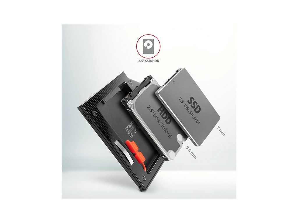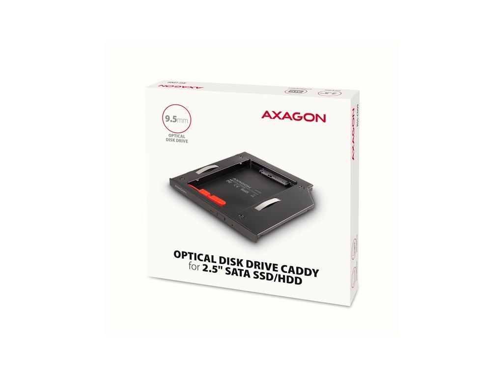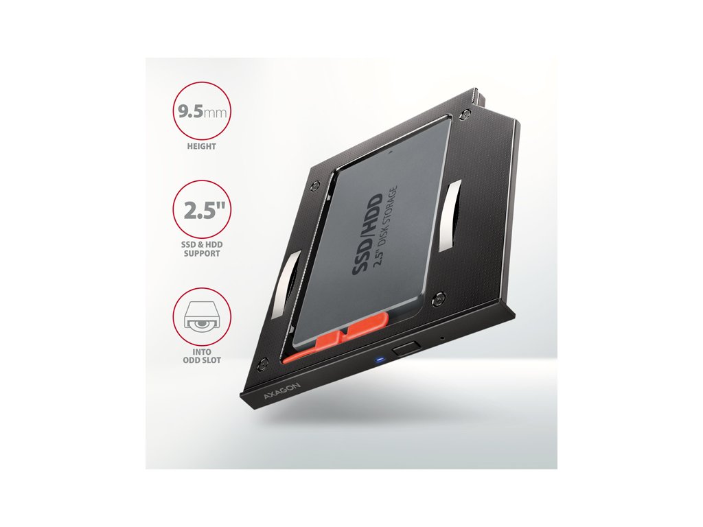 Rám AXAGON RSS-CD09 pre 2.5" SSD/HDD na DVD, 9.5 mm, LED, hliník RSS-CD09