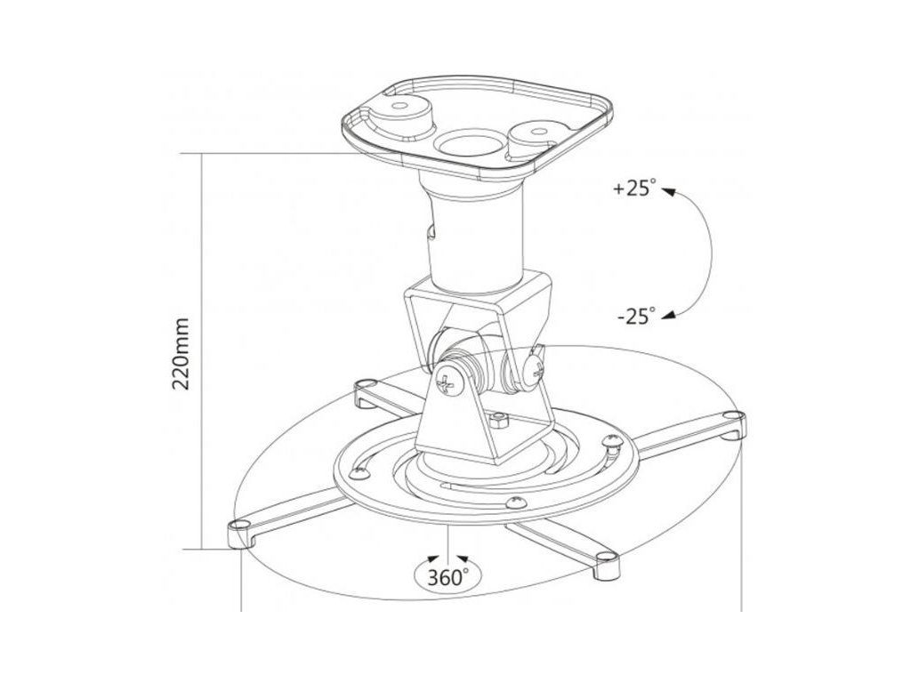 Stropný držiak na dátové projektory - vzdialenosť od stropu 22 cm, prístroj je možné otočiť o 360° a nakloniť +/-25°, maximálne zaťaženie 15 kg, káblový prechod, vhodné aj na uchytenie na šikmé plochy, biela. Univerzálny systém uchytenia dátových projektorov (rozsah 18-31 cm).Popis produktu bol preložený pomocou umelej inteligencie a môže obsahovať nepresnosti.
