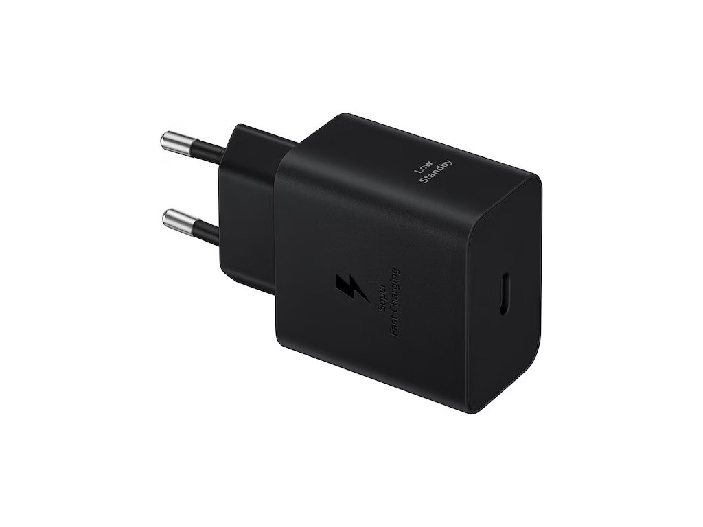 Samsung 45W Power Adapter (bez kabelu) * technologie Smart IC Specifikace: Kompatibilita: * super rychlé nabíjení: Galaxy S10 5G, Galaxy Note10, Galaxy Z Fold2, Galaxy Z Flip3 a novější / Galaxy A90 5G, A80, A70, A52, A33, A23, A05, A15 a novější / Galaxy M31s, M51, M62, M23 , M53, M14 a novější/ Galaxy Tab S7 a novější * super rychlé nabíjení 2.0: Galaxy Note 10+, Galaxy S20 Ultra, Galaxy S22+, Galaxy S22 Ultra, Galaxy S23+, Galaxy S23 Ultra, Galaxy S24+, Galaxy S24 Ultra / Galaxy Tab S7 a novější Funkce: * super rychlé nabíjení 2.0 max. 45W, PD 3,0 PDO/PPS max. 45W, nízká spotřeba energie v pohotovostním režimu (<5mW) Rozhraní: * USB-C Napájení: * napájení na vstupu: 100 - 240 V * napětí na výstupu (max. standard. nabíjení): 5V * napětí na výstupu (max., rychlé nabíjení): PDO : 9 V, 15 V, 20 V / PPS : 5.0-20.0 V * proud na výstupu (max., standard.nabíjení): 3A * Materiál produktu: recyklovaný materiál Barva: černá Rozměry: 43,5 × 81,8 × 28 mm Hmotnost: 92,5 g Obsah balení: * napájecí adaptér * uživatelská příručka Záruka: 24 měs.Dodatočné parametre
