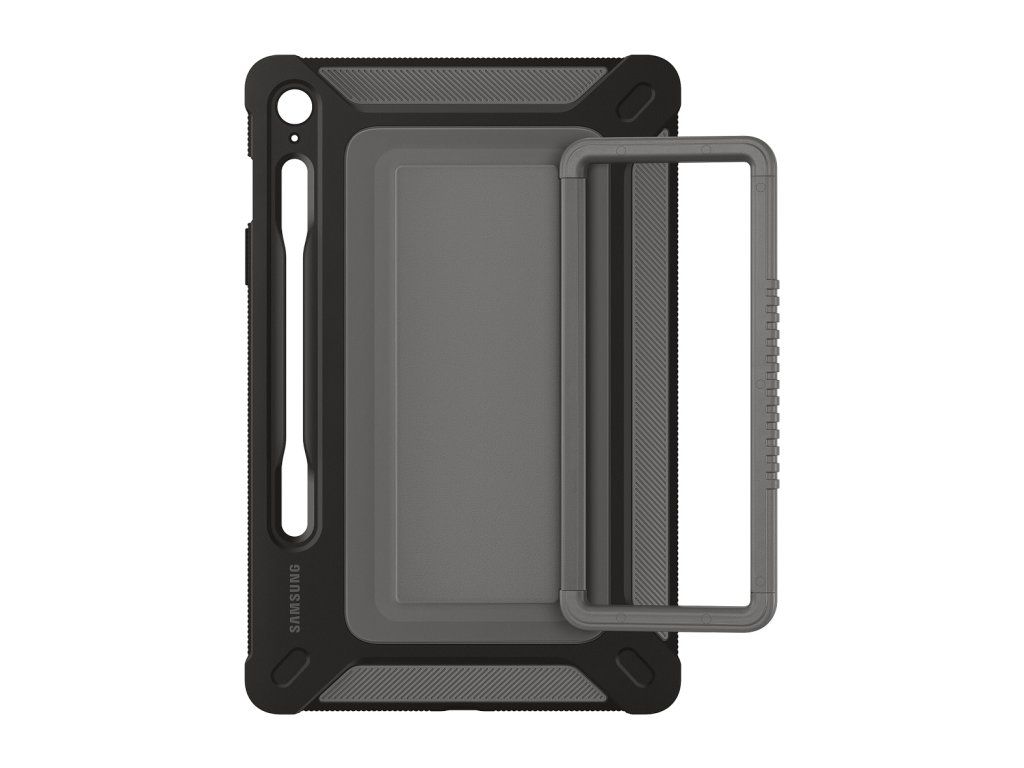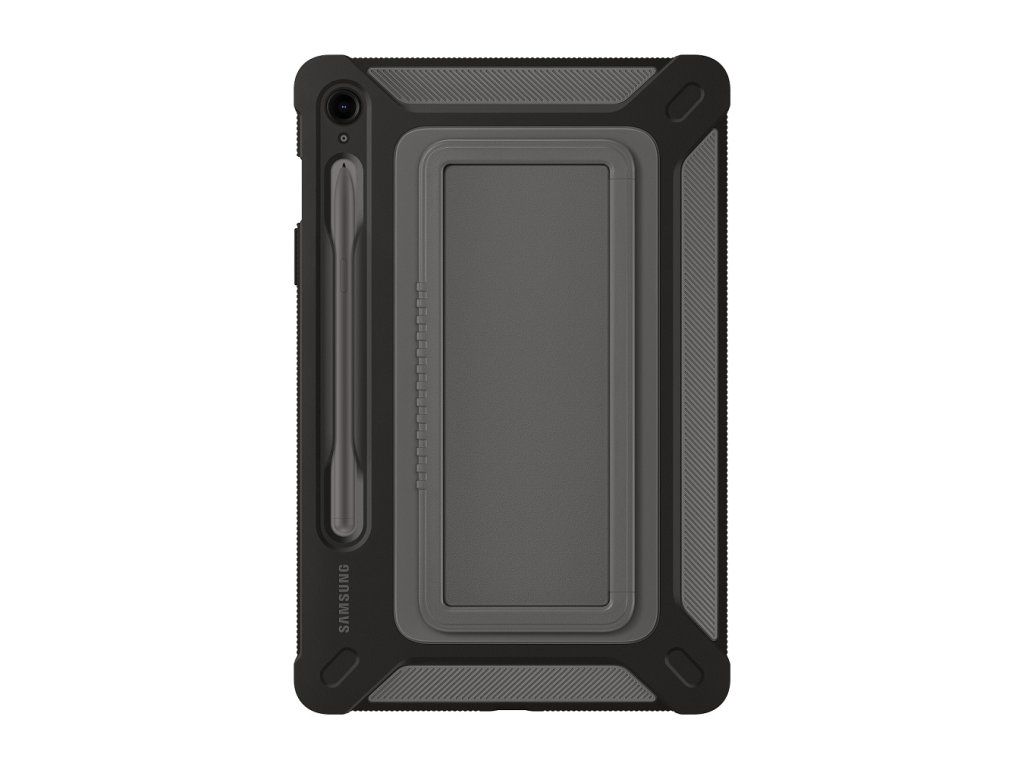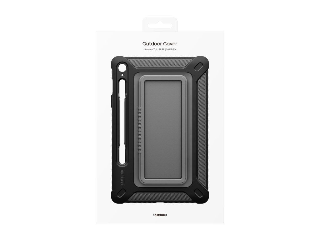 Samsung Odolný zadní kryt pro Samsung Galaxy Tab S9 FE Titan Odolný a spolehlivý Vezměte si svůj tablet bez obav ven. S tímto krytem, vyrobeným v souladu s vojenským standardem odolnosti (MIL-STD 810G-516.7), bude vaše zařízení spolehlivě chráněno před drobnými pády a nárazy na cestách. Stabilní stojan, pohodlné držení Díky vestavěnému stojánku na zadní straně pouzdra můžete zařízení pohodlně prohlížet v režimu na šířku. Funguje také jako rukojeť pro snadné přenášení, takže vám tablet zůstane v ruce i na cestách. Mějte své pero S Pen v bezpečí a neustále po ruce Vestavěný držák pera S Pen je praktický doplněk, s jehož pomocí budete mít pero S Pen po ruce a snadno přístupné, kdykoliv jej budete potřebovat. Barva: Černá Rozměry: 174,5 × 263 × 21,2 mm Váha: 267 g Kompatibilita: Galaxy Tab S9 FEDodatočné parametre