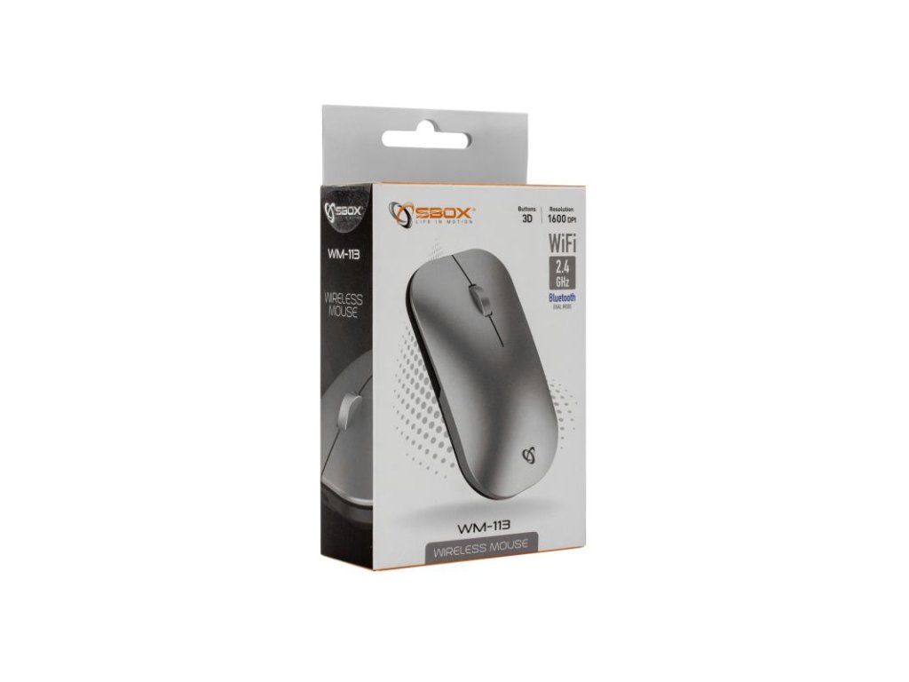 SBOX WM-113, Optická bezdrôtová myš, šedá WM-113
