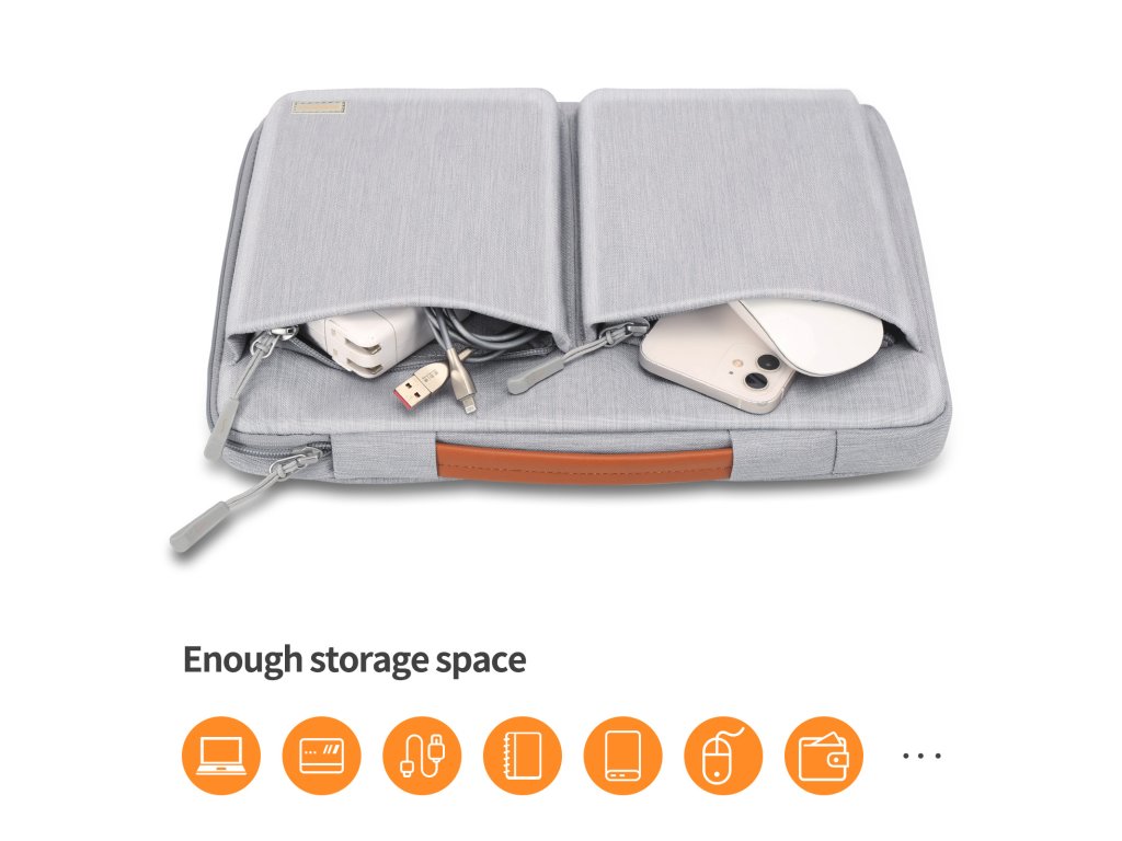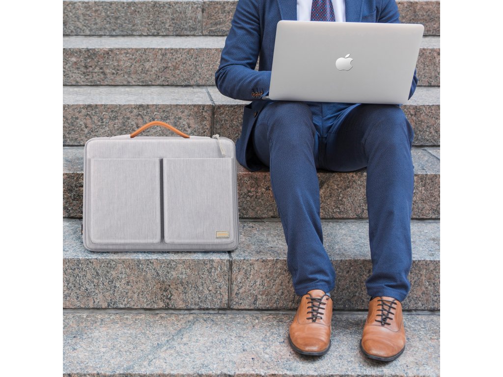 Ochranná taška s voděodolnou povrchovou úpravou. Ochranný obal Seine Scene Orleans poskytne dostatek prostoru pro notebook a díky dvěma velkým předním kapsám také pro všechno příslušenství a drobnosti, které potřebujete s sebou. Vnější strana obalu je opatřena voděodolnou vrstvou, díky tomu nemusíte mít strach z cákanců ani drobného deště. Vnitřní strana je podšita měkkým mikrovláknem, které zařízení chrání před prachem a nečistotami. Pouzdro je vyztuženo tak, aby zařízení poskytlo dostatečnou ochranu při otřesech a lehkých pádech způsobených každodenní manipulací.Dodatočné parametre