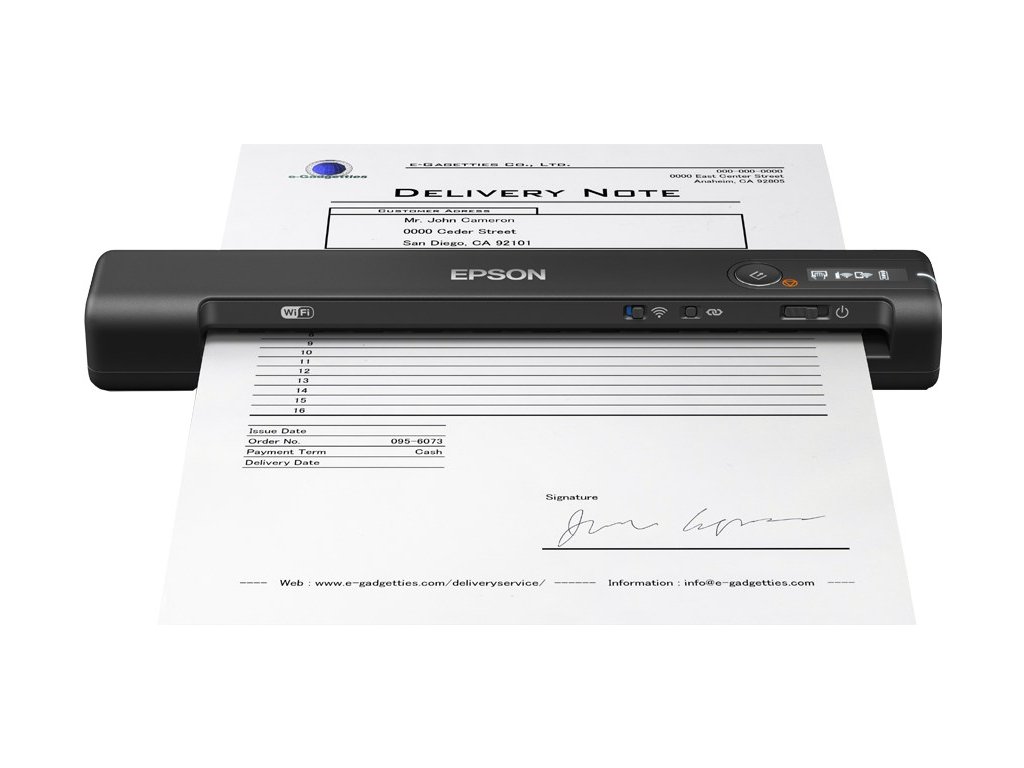 S najmenším mobilným skenerom Epson s pripojením Wi-Fi a napájaním z batérie môžete ľahko skenovať dokumenty do prehľadávateľného súboru PDF, nech ste kdekoľvek.