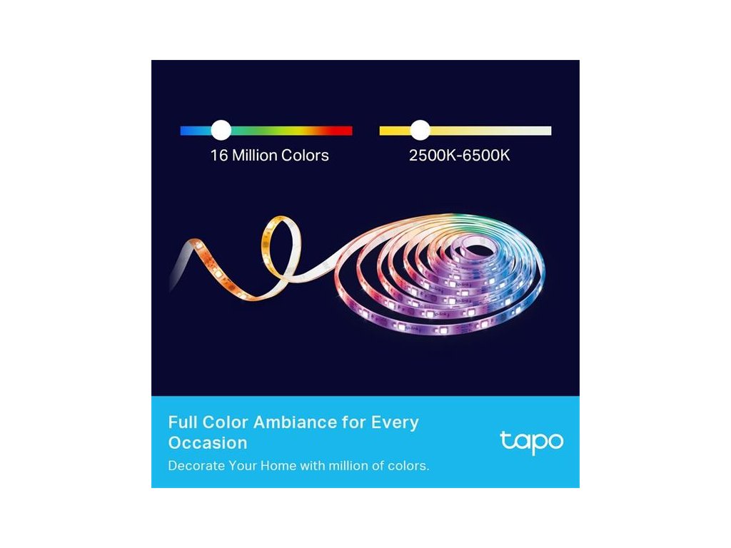 Smart Light Strip, Multicolor SPEC: 2.4 GHz Wi-Fi, 802.11b/g/n, two 16.4 ft/5m RGBW+IC LED light strips, 2000lm, 2500K~6 Tapo L930-10