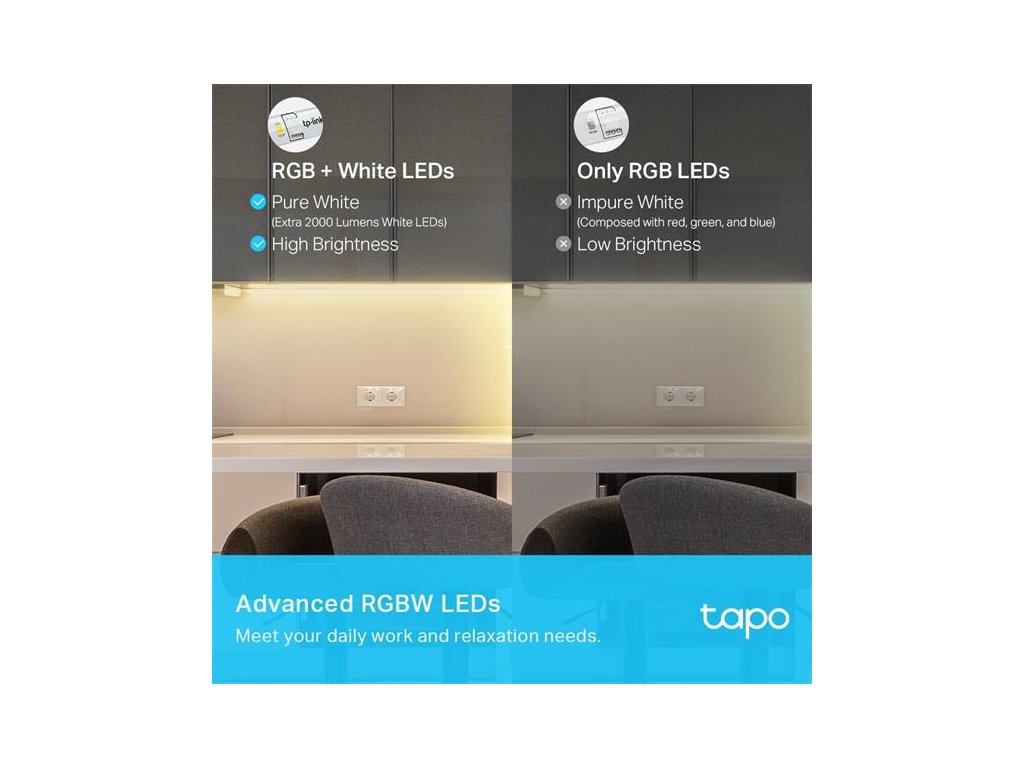 Extra biele LED osvetlenie - funguje ako klasické osvetlenie a zvyšuje tak možnosti využitia farebného svetelného Wi-Fi pásika.