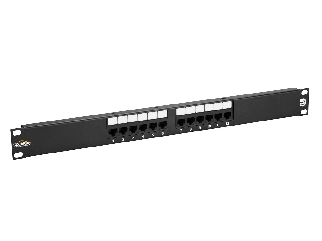 Solarix SX12-5E-UTP-BKNestíněný patch panel nabízí 12 portů.