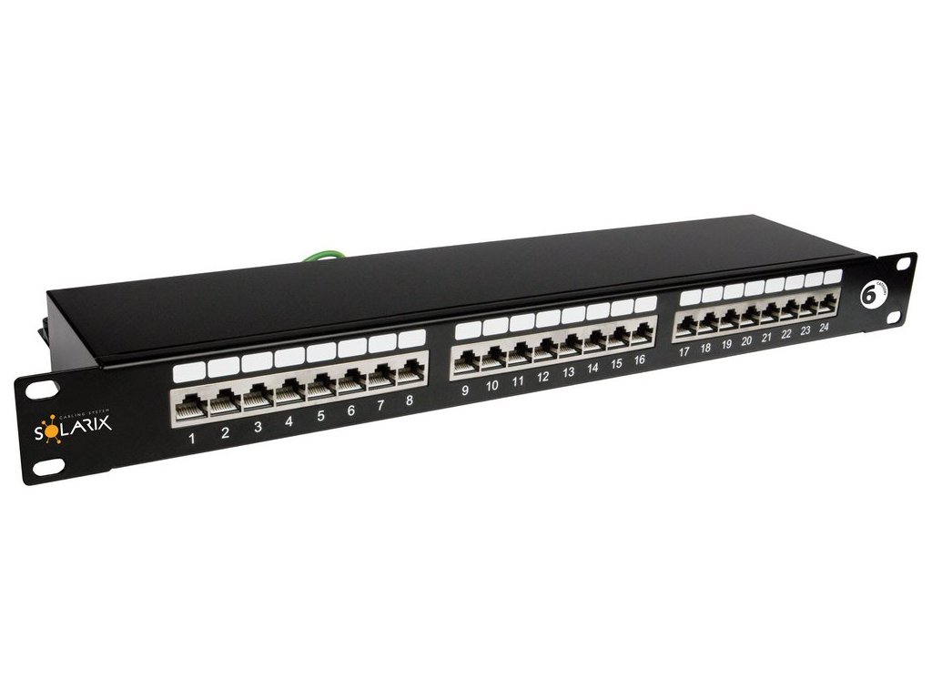 Solarix SX24-6-STP-BKStíněný patch panel nabízí 24 portů.