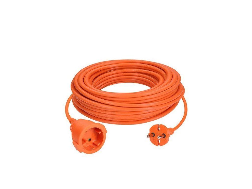 Oranžový predlžovací kábel s dĺžkou 20 metrov a jednou zásuvkou je ideálny na predĺženie elektrickej energie na záhrade alebo v dielni. Vhodný na pripojenie zariadení s dvoupólovou neuzemnenou vidlicou prívodnej šnúry, ktorými je väčšina elektrických náradí. Farebné odlíšenie od okolia zvyšuje bezpečnosť pri práci.
