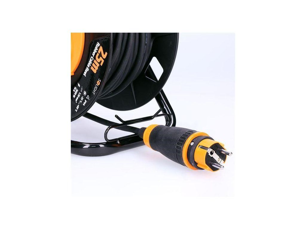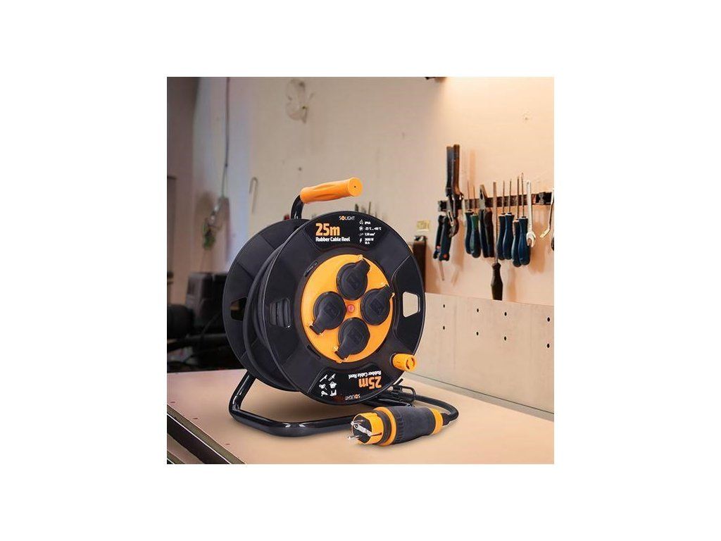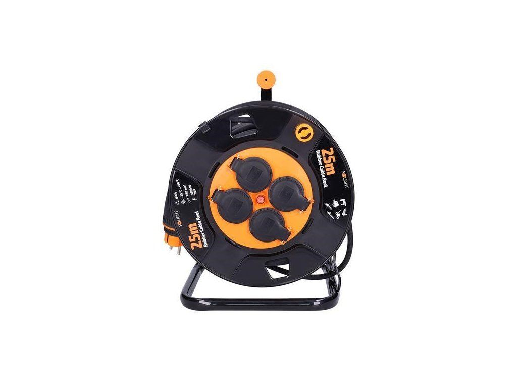 Solight prodlužovací přívod na bubnu, 4 zásuvky, venkovní, 25m gumový kabel, 3x 1,5mm2, IP44 PB33