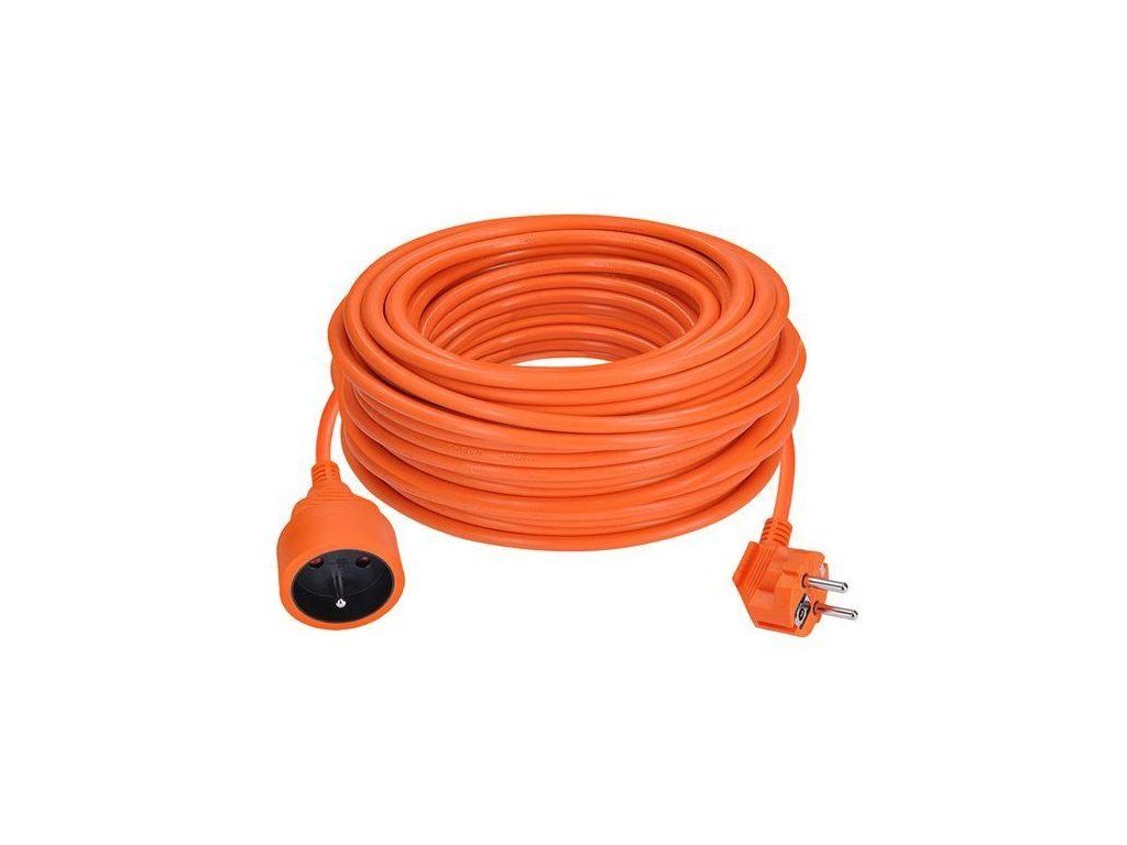 Oranžový predlžovací kábel s dĺžkou 30 metrov a jednou zásuvkou je ideálny na predĺženie elektrickej energie na záhrade alebo v dielni. Vďaka trom vodičom vrátane uzemnenia je vhodný na pripojenie akýchkoľvek zariadení s trípólovou uzemnenou aj dvojpólovou neuzemnenou vidlicou prívodnej šnúry. Farebné odlíšenie od okolia zvyšuje bezpečnosť pri práci.