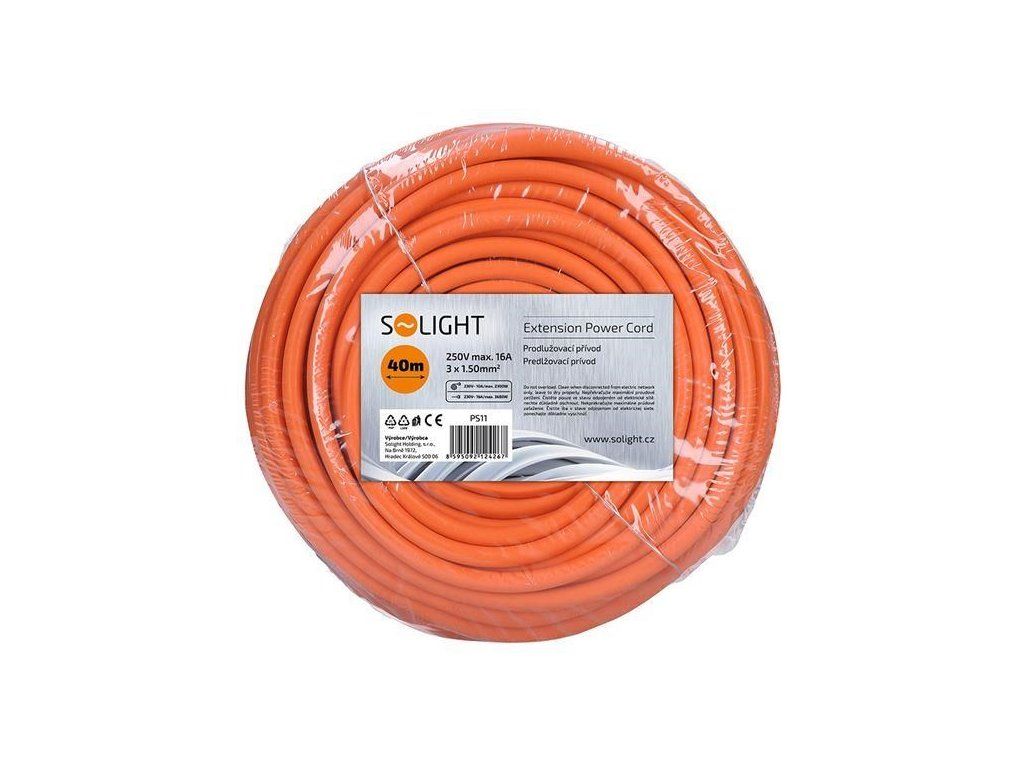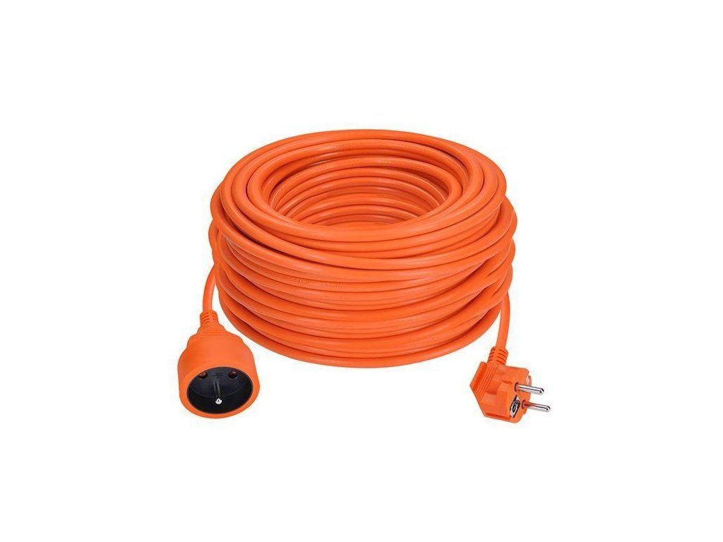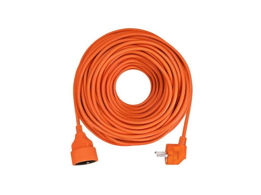 Oranžový predlžovací kábel s dĺžkou 40 metrov a jednou zásuvkou je ideálny na predlženie elektrickej energie na záhrade alebo v dielni. Vďaka trom vodičom vrátane uzemnenia je vhodný pre pripojenie akýchkoľvek zariadení s trojpólovou uzemnenou aj dvojpólovou neuzemnenou vidlicou prívodnej šnúry. Farebné odlíšenie od okolitého prostredia zvyšuje bezpečnosť pri práci.